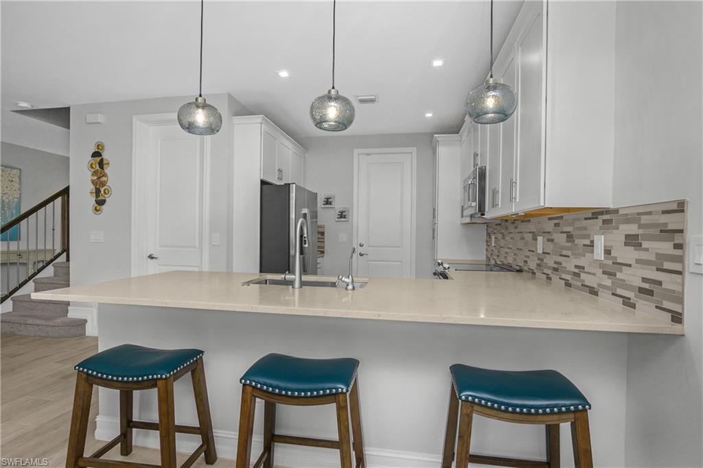 Welcome to your dream coastal retreat in beautiful Naples, Florida! This stunning three bedroom, three bathroom townhome offers the perfect blend of modern comfort and serene waterfront living. Step inside to discover a thoughtfully designed and modern interior featuring an open-concept layout, abundant natural light and high end finishes throughout. The spacious " The Breaker" floor plan flows seamlessly from living room into a stylish kitchen complete with quartz countertops, stainless steel appliances and ample cabinetry ideal for everyday living and entertaining. Upstairs, you'll find three generously sized bedrooms along with a conveniently located washer and dryer on the second floor for easy everyday living. The tranquil primary suite offers picturesque water views, a large walk-in shower, oversized primary closet and beautifully appointed ensuite bathroom. Each additional bedroom offers flexibility for family, guests or a home office. Ideally located between the upstairs bedrooms is a versatile loft which provides the perfect spot for a media room or an additional lounge area. With the second bathroom located conveniently adjacent to the additional bedrooms makes this convenient for all. This home is designed for functionality in mind, featuring a spacious two-car garage, water softener, complete with a large built in storage closet- perfect for extra storage and organization. One of the homes most captivating features is the peaceful water view-perfect for enjoying morning coffee or unwinding at the days end from your private patio. Whether you're looking for a full-time residence, seasonal getaway or an investment opportunity, this townhome delivers! Residents of Vanderbilt Reserve enjoy resort-style amenities including a beautifully appointed clubhouse, sparkling pool, well equipped fitness center, and relaxing spa offering a lifestyle of comfort and convenience at your doorstep. Located in a desirable Naples community, you'll enjoy convenient access to world class beaches, shopping, dining, golfing, schools - all just minutes away! Don't miss your chance to own a slice of paradise!