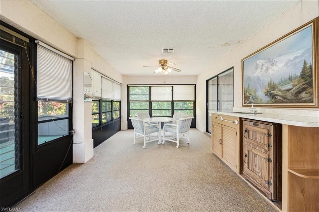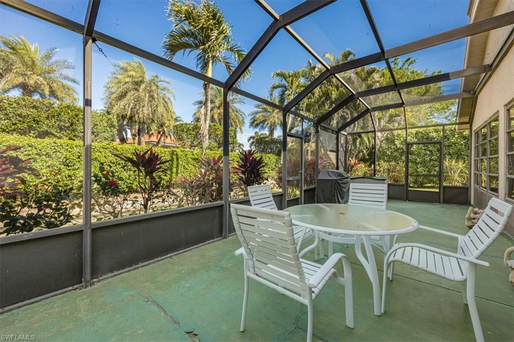 Best priced single-family home in Royal Wood! This 3-bedroom 2-bathroom single family "Sanibel" floorplan home with 2 car garage is just a few steps from the community clubhouse, restaurant, pool & more. This corner lot property has been meticulously maintained by only one owner and is now available to make it your own. This home with newer tile roof (2018) and irrigiation well for lawncare offers 2870 SF under air including a spacious enclosed Florida room with full wet bar and an additional over-sized screened- in lanai, along with an outdoor paved deck area; perfect for enjoying Florida living at its best. This split-level floor plan offers pocket doors to the two guest bedrooms and bath offering privacy to your houseguests. Large eat-in kitchen offers plenty of counter space and pantry. Primary bedroom has a walk-in closet with a permanent in-floor safe for peace of mind, and whole house is wired for surround sound. Primary bathroom has ample space with dual sinks, walk-in shower, soaking tub and water closet. Walk or ride your bike to the clubhouse & enjoy the restaurant, fitness center offering a variety of classes, pro-shop, library, fire pit and more. Royal Wood has a very active racquet sports association and brand-new tennis courts painted & ready for pickleball offering Men's, Women's and Mixed Doubles Tennis & Pickleball. Royal Wood is a gem of a community that offers an 18-hole championship golf course w/multiple tees, 2 practice areas, driving net & walk-on privileges. Golf memberships are immediate with no waitlist, reciprocals off- season, and 70 new golf carts add to the fun! Social activities include live music, happy hours, karaoke, cards, trivia, bingo, name that tune, golf scrambles, holiday dinner dances & more! Located just 6 miles from Naples' famous 5TH AVE South, 3RD ST South & beautiful Gulf beaches Royal Wood is also just a few short miles from Naples Pickleball Center, Celebration "food truck" Park, Tin City, Sugden Park, Naples Botanical Gardens, Physicians Regional Hospital & more. Take a 15-mile drive to beautiful Isles of Capri or Marco Island and enjoy your new hometown.