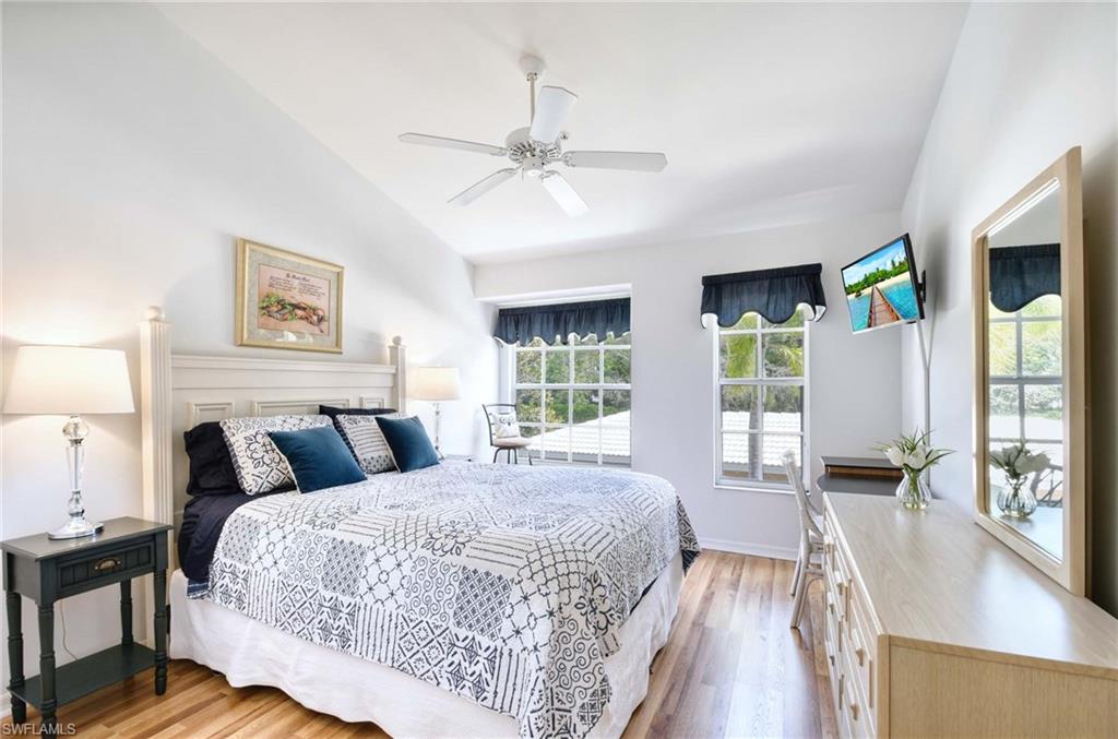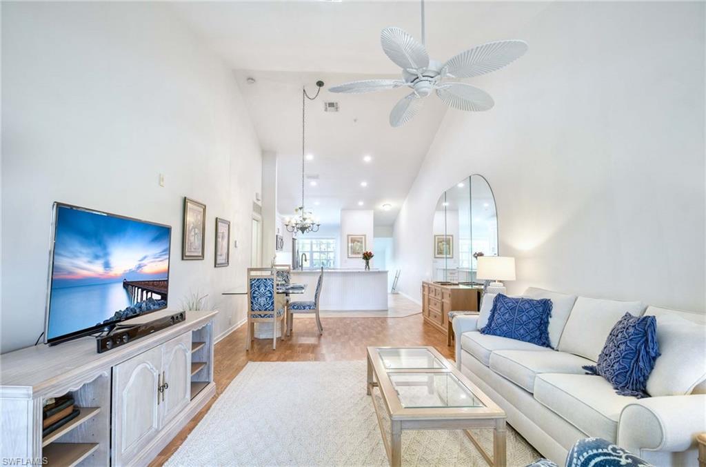 EXQUISITE LAKE & GOLF COURSE VIEWS This beautifully updated 2BR/2BA second-floor residence captures stunning west-facing sunsets over the largest lake in WCC, complete with illuminated fountains. The open-concept layout features a tranquil primary suite with golf course views and a private guest retreat. Stylish upgrades include a modern kitchen and baths, stainless steel appliances, and seamless laminate wood flooring throughout. Recent improvements—new A/C (2023), water heater (2022), appliances (2021), fresh exterior paint (May 2025), hurricane shutters, and updated lanai screening—offer both comfort and peace of mind. Offered turnkey furnished, this home is truly move-in ready. Enjoy a vibrant, amenity-rich lifestyle with golf membership included and over $5 million in exciting community enhancements underway—featuring new tennis, pickleball, and a cabana bar (2026–2028). Cavendish Court residents also enjoy their own private pool and nearby tennis/pickleball courts just steps away. Worthington Country Club offers a championship bundled golf course, Har-Tru tennis courts with on-site pro and league play, pickleball, bocce, a state-of-the-art fitness center, resort-style pool, cabana bar with outdoor dining, restaurant, pub, and more—all within a warm, welcoming community just minutes from beaches, shopping, and airport.