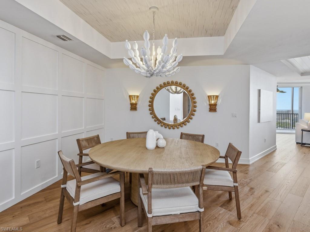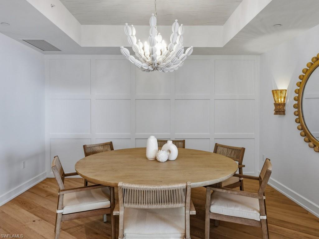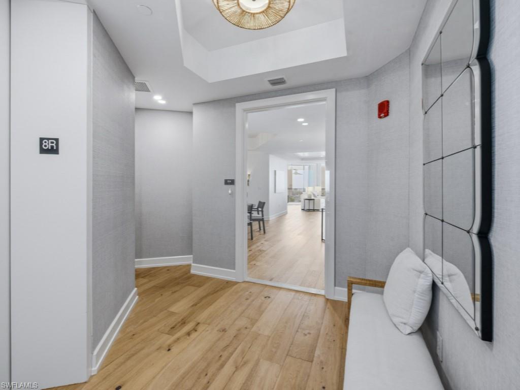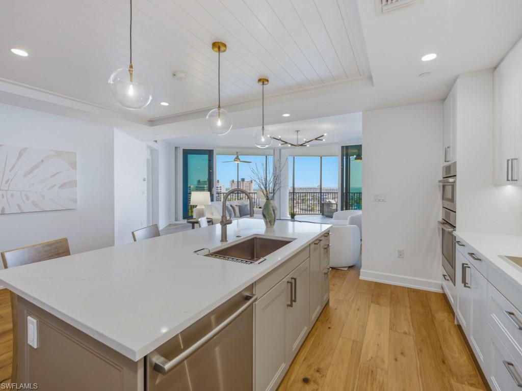 One or more photo(s) has been virtually staged, AI generated or rendered. Welcome to exceptional coastal elegance in the much sought after Grandview at Bay Beach positioned at the peaceful southern tip of Fort Myers Beach. Offered furnished, this exceptional 4-bedroom, 3 full baths plus powder room condo, showcases 2,767 sq. ft. of under-air living space and a total of 3,262 sq. ft. that includes an expansive lanai and balconies overlooking multiple water views in many directions. Built in 2023, the unit features tailored finishes and current state-of-the-art construction throughout, including $125,000.00+ in upgrades that include designer lighting, featured wood panel walls & ceiling.This 8th floor unit location provides expansive visuals of a variety of bay, gulf and canal water views that mesmerize both day and night as you span the surrounding areas. As the sun shines, the days are bright, crisp, vibrant and fresh. Sunsets are glorious and memorable, while evenings become a kaleidoscope of colors. Designed with casual comfort or a more formal feel for entertaining, you set the tone. The open floor plan flows smoothly from one living area to the next and transitions accordingly, day and night. The spacious primary suite invites privacy and relaxation, and three additional bedrooms extend an invitation to your family and guests to enjoy their own quarters, each with a water view and 2 with a shared open-air balcony. Each of the bathrooms are exceptionally designed and spacious. Note too, the condo has its own full-size laundry room. This residence is available for immediate enjoyment, as ti is being offered furnished. One convenient under-the-building assigned garage parking space & an extra storage area add to the offering. Amenities for your enjoyment include a Resort-style pool & spa, state-of-the-art fitness center with side studio for yoga, stretching or Tai Chi. Tennis & pickleball courts, active social club room with bar, outdoor grilling & social areas with seating & firepits. Enjoy walking paths, biking with storage, running/jogging & much more. There is also 2 guest suites for reservation in the building for guests coming to town. This is the lifestyle & the setting you've always dreamed of, now, is your time.