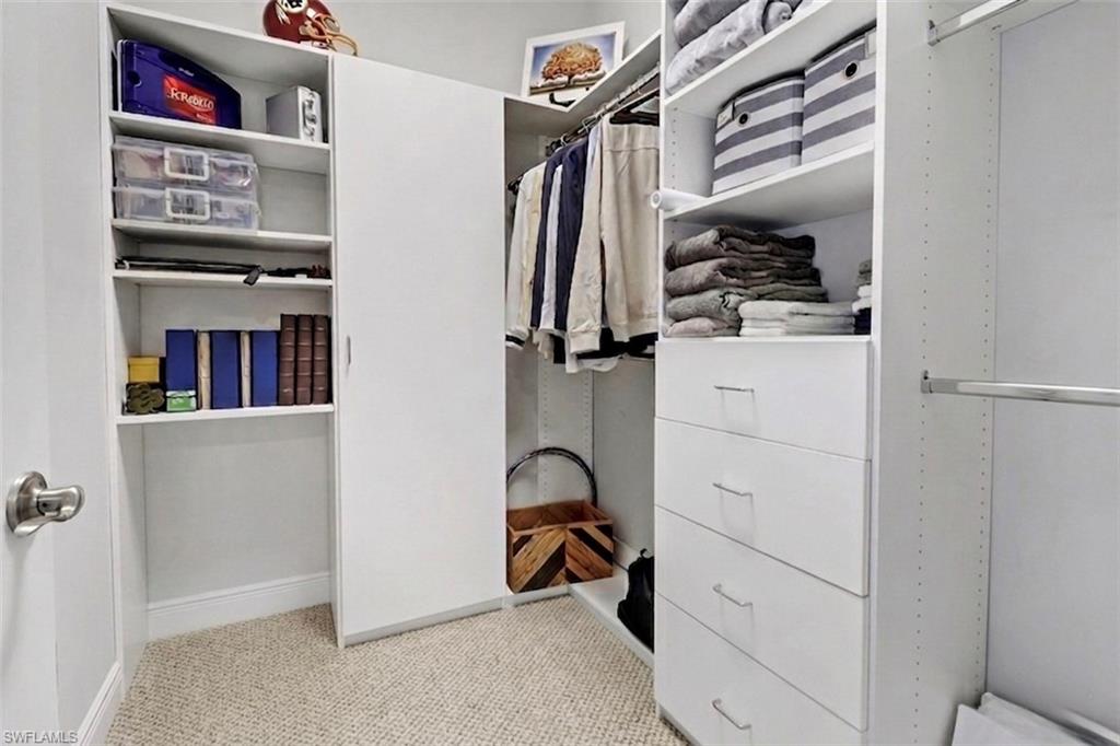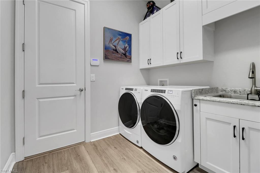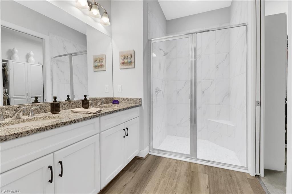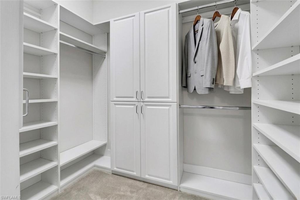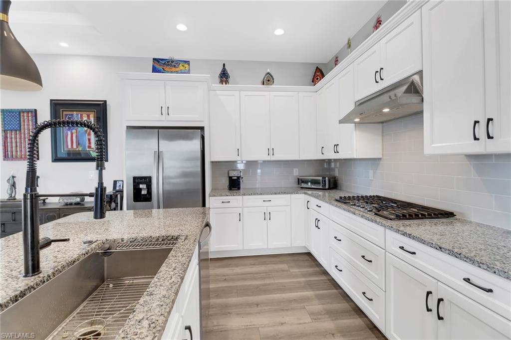 Welcome to 8966 Saint Lucia, an upgraded Stillwater model offering the perfect combination of style, comfort, and one of the most desirable views in Azure at Hacienda Lakes. With over 1,640 square feet of living space, this is the largest single-story villa floor plan in the community, featuring 2 bedrooms, 2 bathrooms, and an open layout designed for both everyday living and easy entertaining. The kitchen is beautifully appointed with granite countertops, a gas cooktop, built-in wall oven and microwave, custom cabinetry with soft-close doors and drawers, and a spring-spout faucet. The main living area feels bright and inviting, with recessed lighting, a custom shiplap feature wall, tray ceilings with crown molding, and seamless flow between the kitchen, dining, and living spaces. The spacious primary suite offers dual sinks, granite countertops, a tiled walk-in shower, and a large walk-in closet with custom built-ins. Throughout the home, you’ll find thoughtful upgrades including wood-look luxury vinyl plank flooring in the main living areas and bathrooms, custom lighting, a hurricane-impact entry door, and a laundry room with custom cabinetry and built-in sink. Triple sliders open to the expansive 11.5’ x 30’ extended lanai, where the long lake view creates an exceptional backdrop for relaxing or entertaining. There is even a dedicated 120V plug ready for a hot tub. Paver driveway, walkways, and lanai add to the home’s curb appeal and polished finish. Azure at Hacienda Lakes offers a prime Naples location with convenient access to shopping, dining, and Gulf beaches, along with resort-style amenities that include a pool and spa, clubhouse, gathering room with catering kitchen, billiards, fitness center, pickleball, and tennis. If you are looking for a beautiful West Indies-style community with everything conveniently in one place, Azure at Hacienda Lakes is hard to beat.