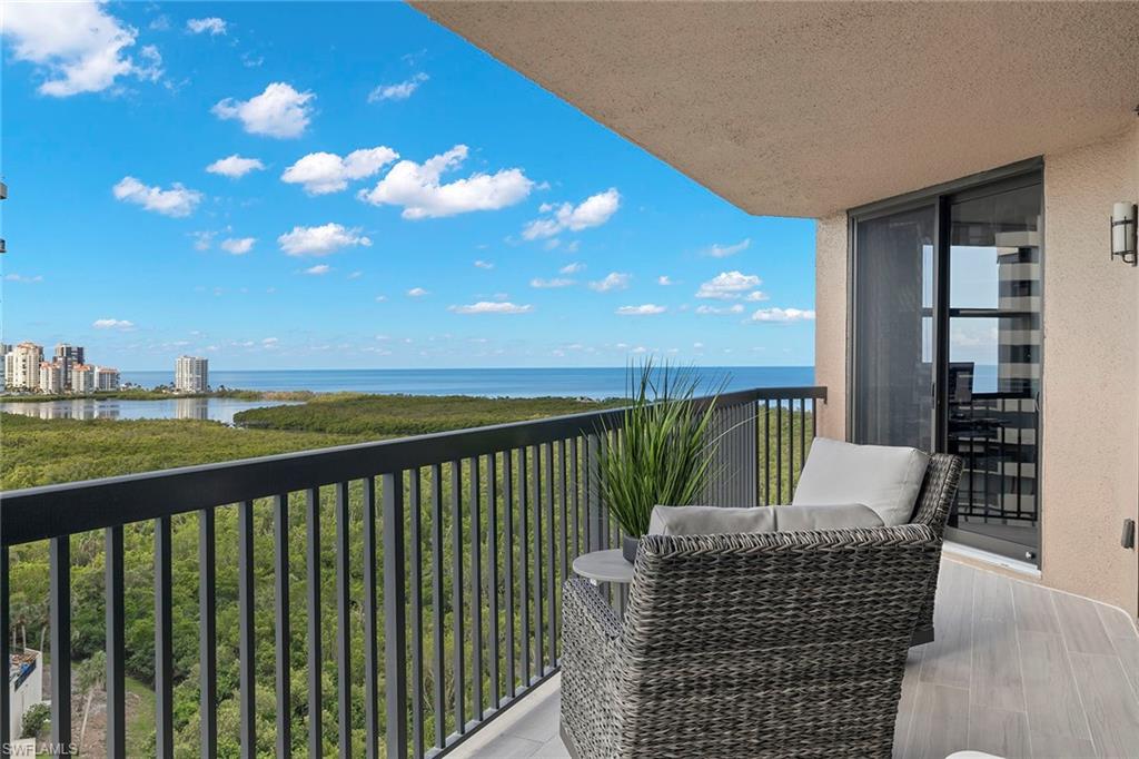 Amazing Gulf views highlight this renovated 14th-floor Dorchester residence in Pelican Bay. The open floor plan features two ensuite bedrooms plus a half bath, with living areas opening to the lanai to enjoy sunsets, sunrises, and sparkling evening lights. The home is designed in a soft contemporary style with designer tile in bathrooms with recessed lighting, Quartz counter tops, solid wood doors, tankless water heater, impact glass windows and sliders. The kitchen offers stainless steel appliances, wood cabinetry, granite countertops and a walk-in pantry with views of the Gulf Dorchester has been beautifully renovated, including a new roof, backup generator, dedicated storage, and air conditioning units maintained and replaced by building management as needed. Residents enjoy exceptional amenities such as fitness room with Pilates reformer, social room with kitchen, beautifully appointed guest suites, pool, spa, barbecue grills, fire pits and under-building parking. Located near South Beach boardwalk, owners have access to Pelican Bay’s private beaches, beachfront dining, tennis courts, pickleball and more. Just minutes to all Naples has to offer.