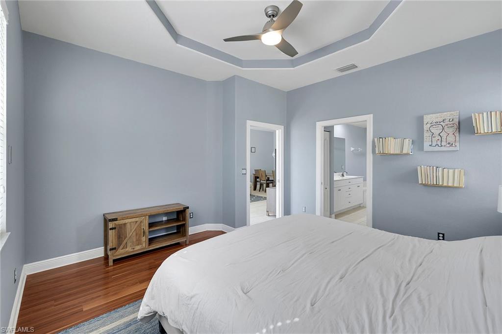 Positioned along a freshwater lake, the screened pool terrace becomes the defining feature of this residence, offering open water views and a setting designed for daily living and entertaining. Welcome to 8616 Ibis Cove Circle, a single-family residence in the gated community of Ibis Cove in Naples. Offering three bedrooms, two baths and 1,597 square feet, the home features a great room floor plan that seamlessly connects interior living areas to the outdoor environment. The well-appointed kitchen is finished with quartz countertops and is centrally located to serve the main living and dining spaces. The primary suite is oriented toward the lake and includes a walk-in closet and water views. Two additional bedrooms provide flexibility for guests or workspace. Recent improvements include a roof and gutters completed in 2023, an air-conditioning system installed in 2023 and Storm Smart shutters added in 2021. Additional enhancements include whole-home surge protection, updated interior lighting and fans, pool cage rescreen, outdoor lighting, a hardwired Tesla charger, garage storage racking and a security system with exterior cameras. Ibis Cove offers a gated entry and a range of resident amenities, including a clubhouse of approximately 5,000 square feet, heated Olympic-size pool and spa, fitness center, tennis courts, playground, billiards and card rooms, library and community gathering spaces. The community includes more than 19 acres of lakes with fountains and maintains low homeowners' association fees. Near Gulf Coast High School and zoned for Laurel Oak Elementary and Oakridge Middle School, the property offers convenient access to local schools and daily amenities.