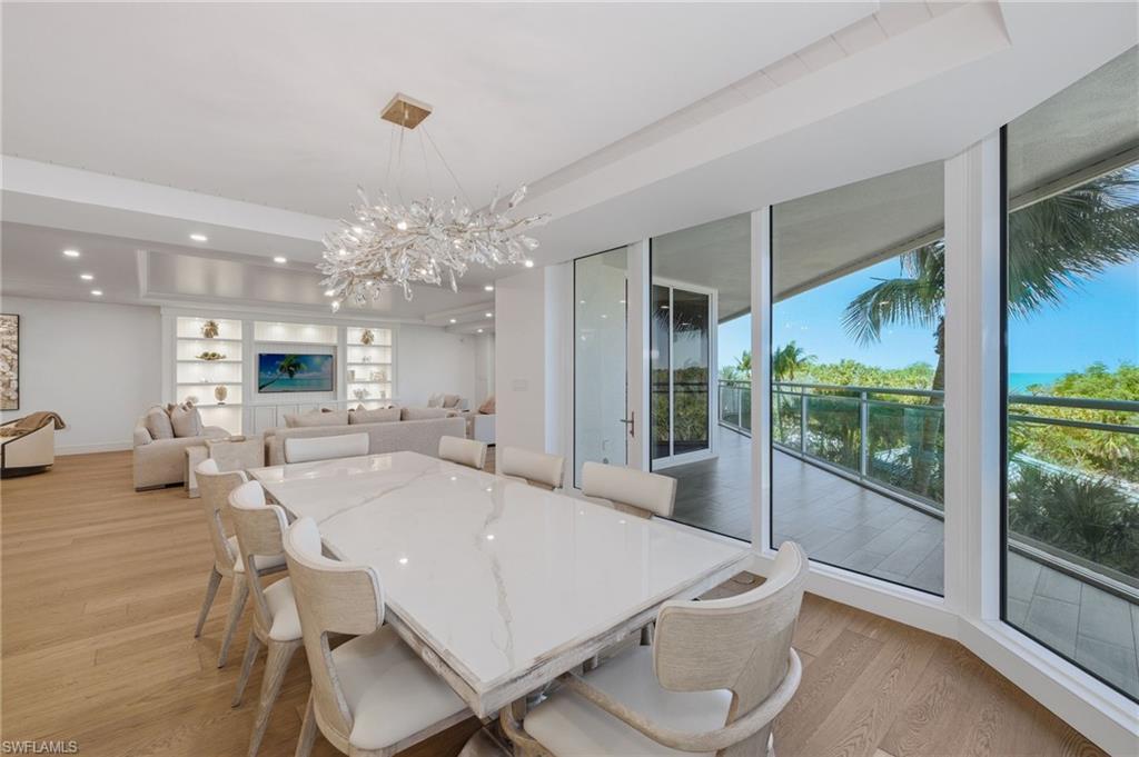 Experience the pinnacle of coastal living! Residence 308 at Moraya Bay presents a refined, contemporary beachfront offering within one of Naples’ most exclusive coastal towers. This spacious 3-bedroom plus den residence with a separate office and 3.5 baths has been thoughtfully updated, blending modern design with exceptional craftsmanship throughout. Wide-plank wood flooring, custom ceiling detail, and extensive millwork create a cohesive, elevated interior. The open-concept floor plan is anchored by a chef’s kitchen complemented by a full butler’s pantry, seamlessly connecting to the main living and dining areas—ideal for both everyday living and entertaining. Expansive windows and glass doors open to a generous lanai with tranquil views overlooking the resort pool and out to the Gulf, offering a seamless indoor-outdoor lifestyle. The primary suite is a private retreat, featuring a spacious bedroom, dual spa-inspired bathrooms with two showers, separate water closets, and an oversized walk-in closet. Professionally decorated with sophisticated, high-end furnishings, this residence is offered in a move-in-ready condition. Moraya Bay residents enjoy a private beachfront lifestyle with an on-site beach club, full-service amenities, and the added benefit of membership to Kalea Bay’s renowned club—expanding access to world-class dining, wellness, and resort-level experiences. A rare opportunity to own a fully curated beachfront residence with unmatched amenities and membership privileges.