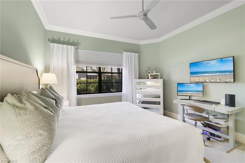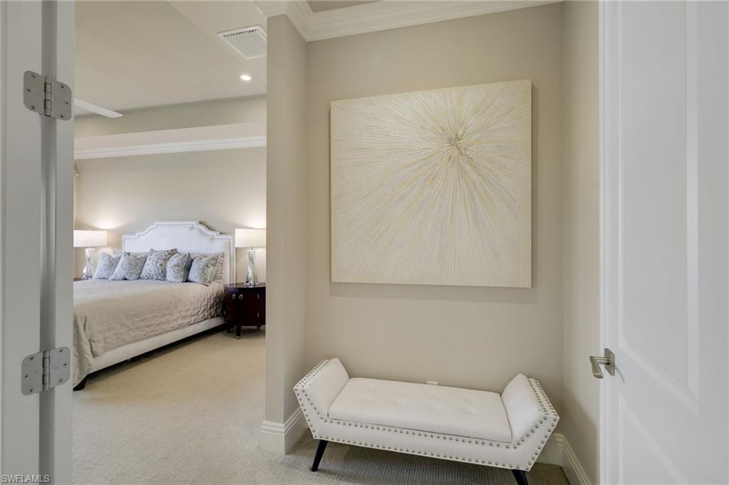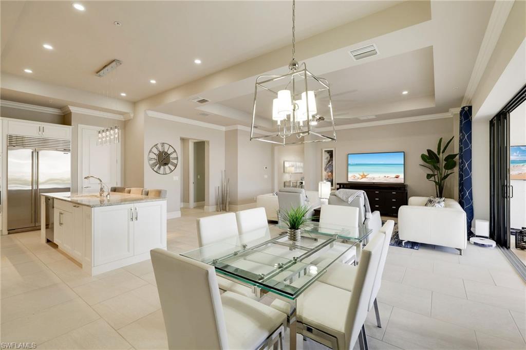 Enjoy a contemporary coastal lifestyle in this spacious end-unit condominium overlooking a quiet inlet of Miromar Lakes. Bright, airy interiors and an open-concept design create the perfect setting for effortless living and entertaining. The crisp white chef’s kitchen features sleek hardware, high-end appliances, and a breakfast bar, while retractable screens on the expansive lanai invite seamless indoor-outdoor living with peaceful water views and stunning Southwest Florida sunsets. The spacious primary suite offers a walk-in closet and a spa-like bath with a deep soaking tub and separate glass-enclosed shower. With three bedrooms, three baths, manicured surroundings, and a coveted location in the luxury Ravenna neighborhood, this residence offers both comfort and style. Miromar Lakes delivers a five-star resort lifestyle with freshwater lakes, white-sand beach, infinity pool, tennis, championship golf, two waterfront restaurants, a full-service wellness spa, and a vibrant social calendar year-round.