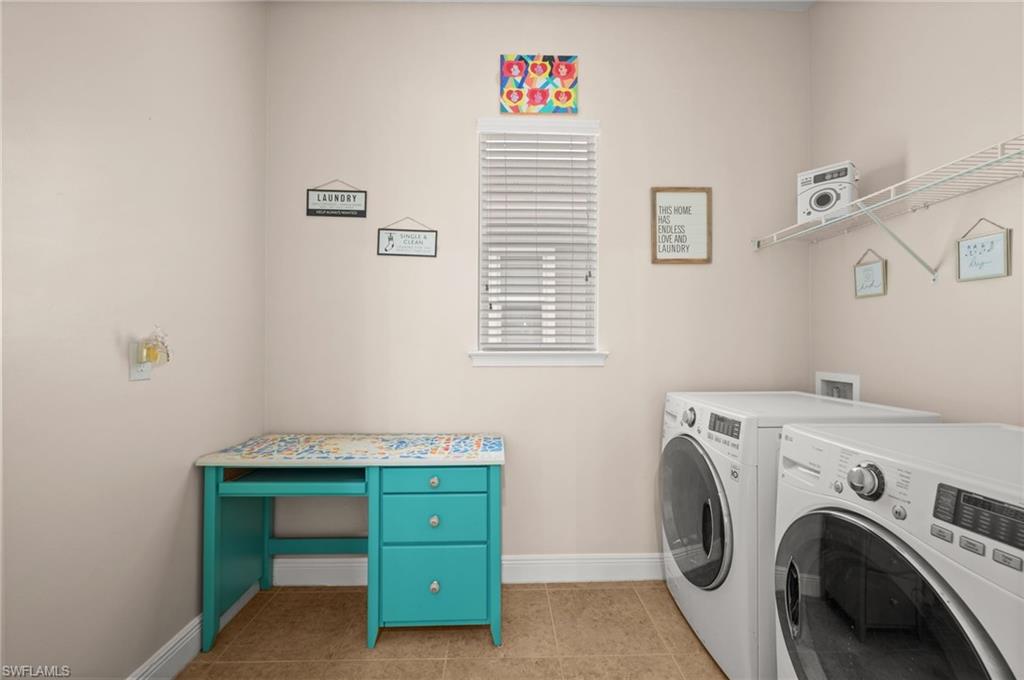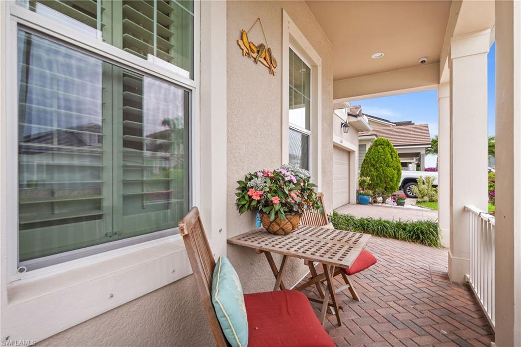 Rare opportunity to own the highly desirable Banyan floorplan featuring 3 bedrooms + den, a private pool, and an oversized lot with both extended outdoor living space and a fenced yard. This thoughtfully designed home offers a functional layout with separation between the bedrooms and main living areas, complemented by soaring ceilings, oversized doors, and an open-concept design that feels both spacious and inviting. The kitchen features granite countertops, a dedicated serving area, and flows seamlessly into the main living and dining spaces. Located in the highly desirable gated community of Compass Landing, residents enjoy a resort-style clubhouse with pool, spa, fitness center, park, event space, and year-round social activities. Just a short walk, bike ride, or golf cart trip away is Founders Square—home to 10+ restaurants, spa and wellness services, Ace Hardware, coffee shops, Spenga, medical offices, and more. Zoned for top-rated “A” schools, this premier North Naples location offers convenience, community, and an enviable lifestyle. The den, enclosed with glass doors, provides flexible use as a home office, study, or additional living space. The primary suite is privately positioned and features tray ceilings, a large walk-in closet, and a spacious walk-in shower. Outdoor living is a standout feature, with an expansive lanai designed for entertaining and everyday enjoyment, complete with a pool, water feature, and multiple seating areas. The fenced backyard offers rare additional green space for pets or play, all set against a peaceful preserve backdrop for added privacy.