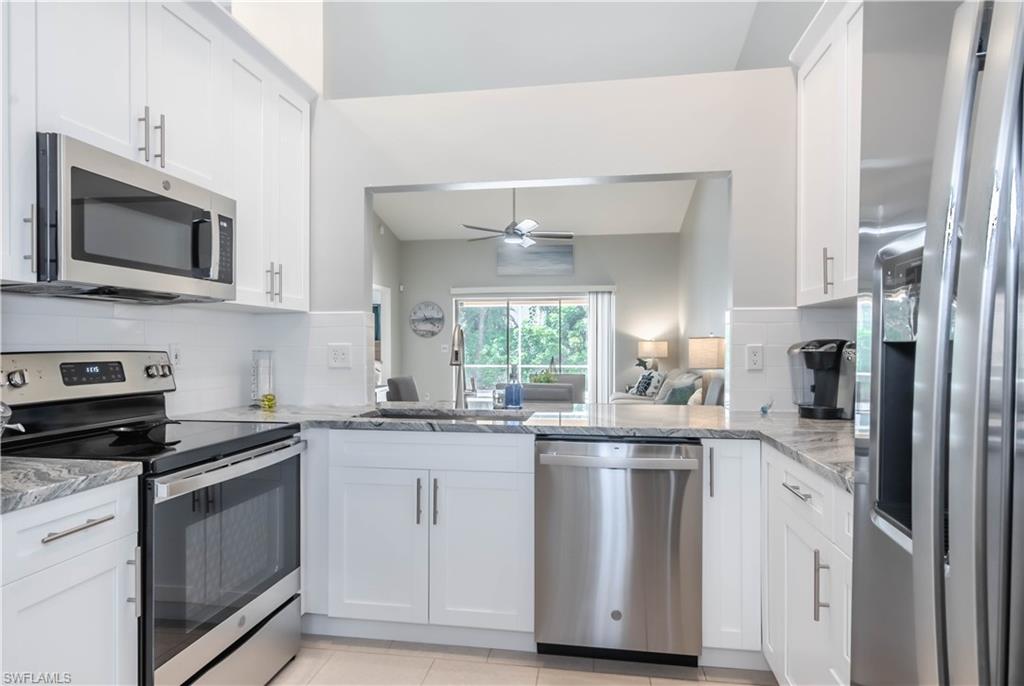 Beautifully fully renovated and move-in ready, this stunning 3-bedroom, 2-bath attached villa with a 2-car garage is located in the highly sought-after Naples Heritage Golf & Country Club community. The home has been completely rehabbed and features a brand-new roof, offering peace of mind and modern finishes throughout. This bright and spacious residence offers an open floor plan with abundant natural light and thoughtfully updated living spaces. The upgraded kitchen flows seamlessly into the main living and dining areas, creating the perfect setting for both everyday living and entertaining. The primary suite provides a comfortable retreat with a private bath and generous closet space, while two additional bedrooms offer flexibility for guests, a home office, or additional living space. Offered fully furnished, this home is truly turnkey—perfect for seasonal residents, investors, or anyone looking to enjoy the Naples lifestyle immediately.