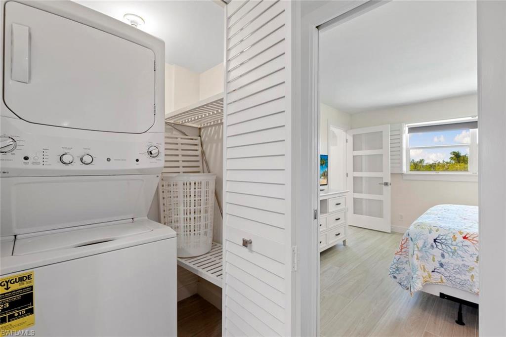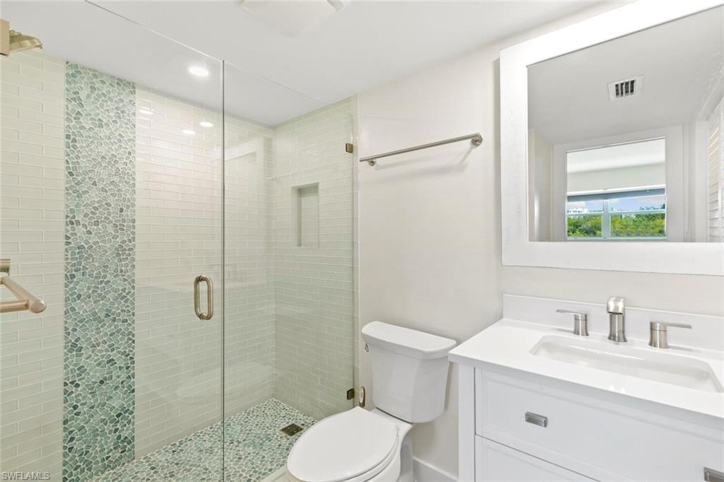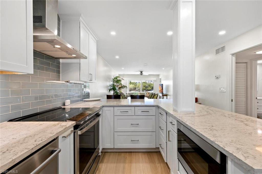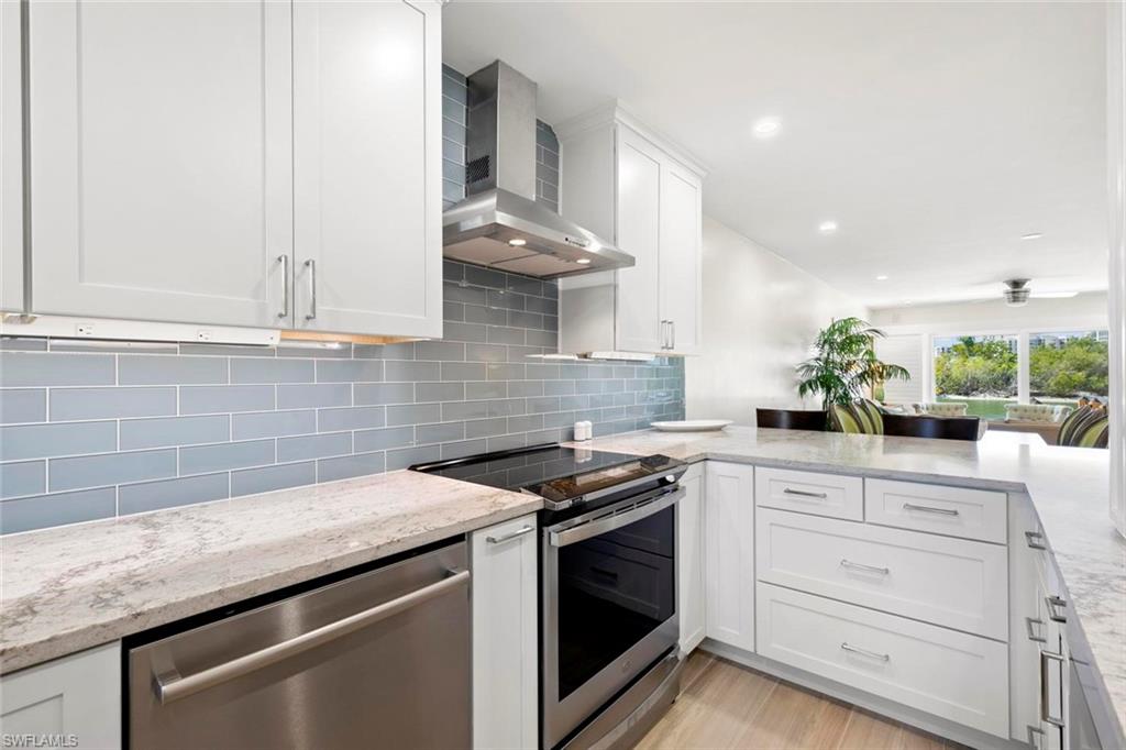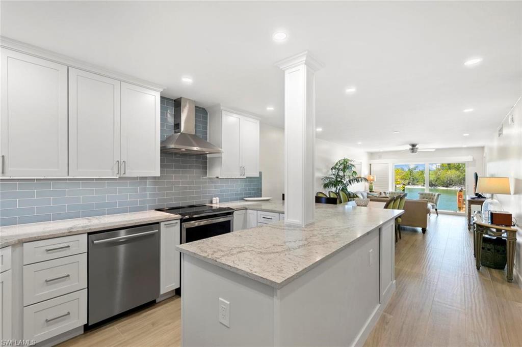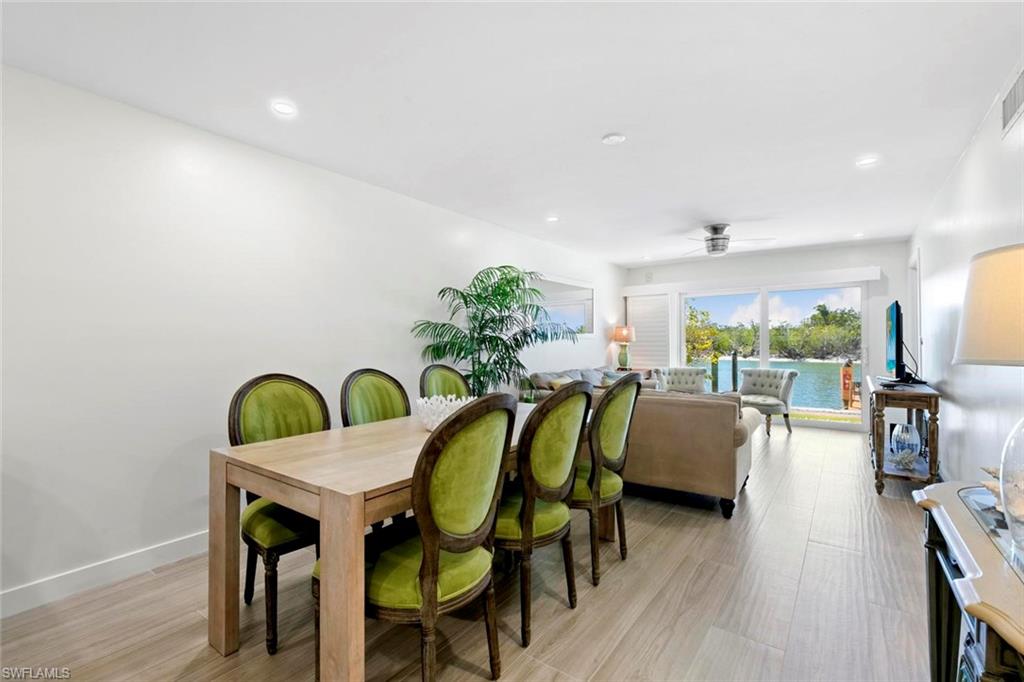 Experience the magnificence of coastal living in this newly renovated west-facing residence with highly desirable deeded dock. Immerse yourself in the meticulously designed space adorned with the finest finishes. This two-bedroom, two-bathroom residence features designer decor and premium tiling, complemented by brand new state-of-the-art appliances for modern comfort. The open kitchen boasts spacious quartz countertops and an under-counter microwave. A secluded suite with a vanishing pocket door ensures privacy for your guests. Enjoy the added convenience of a personal washer and dryer. Relax on the lanai, offering breathtaking views of Collier Creek and the Gulf. Fish from your own dock just steps from your residence or set sail on your boat and reach the beach within minutes from your private dock. Situated in the Ville de Marco West community, this beautifully appointed residence provides a tranquil haven near restaurants, entertainment, and shopping. Seize the opportunity to own this exceptional home with its recent improvements. Embrace the epitome of luxurious coastal living.