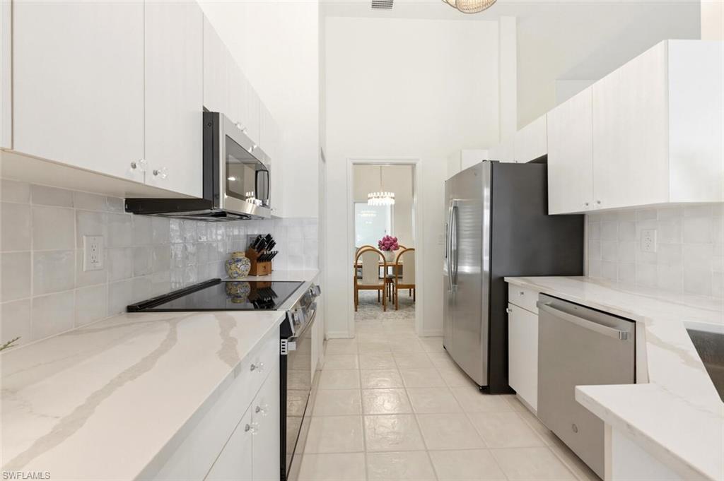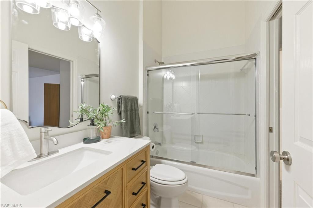 Welcome to your fully reimagined lakefront retreat in the highly sought-after gated community of Carlton Lakes in North Naples. This beautifully updated end-unit residence has been thoughtfully renovated to offer a fresh, modern feel with stylish upgrades throughout. Step inside to discover a light-filled, open-concept layout enhanced by brand-new kitchen and bathroom renovations, fresh interior paint, and updated finishes that create a clean, contemporary aesthetic. The redesigned kitchen shines with modern cabinetry, sleek countertops, and upgraded appliances—perfect for both everyday living and entertaining. Both bathrooms have been tastefully remodeled with elevated fixtures and finishes, offering a spa-like experience. Enjoy seamless indoor-outdoor living as the main living space flows to a private screened lanai overlooking tranquil lake views—the perfect setting for morning coffee or evening relaxation. As an end unit, this home is filled with natural light and offers added privacy. Additional features include hurricane protection for peace of mind, a well-organized garage with ample storage, and recent mechanical updates. Every detail has been considered to make this home truly move-in ready. Carlton Lakes offers a vibrant, amenity-rich lifestyle with a clubhouse, resort-style pool, fitness center, walking and biking trails, bocce courts, and multiple neighborhood pools. Ideally located just minutes from Naples’ renowned beaches, shopping, dining, and major conveniences—with walkable access to Seed to Table and nearby shopping. Whether you’re looking for a full-time residence, seasonal getaway, or investment opportunity, this beautifully updated home delivers the perfect blend of comfort, style, and location.