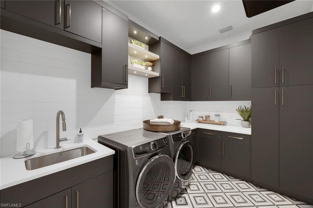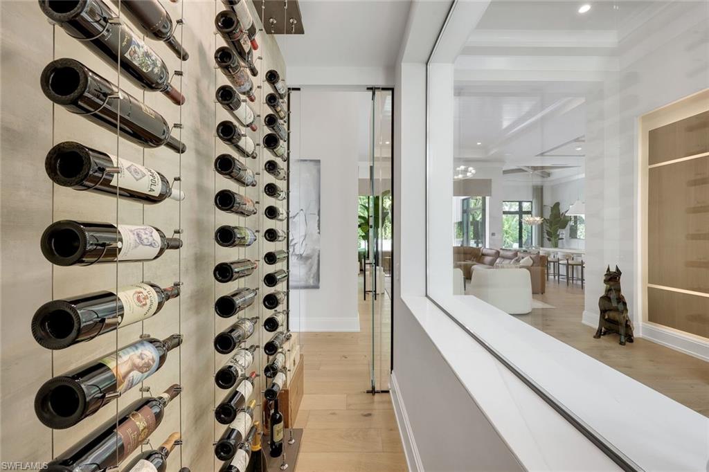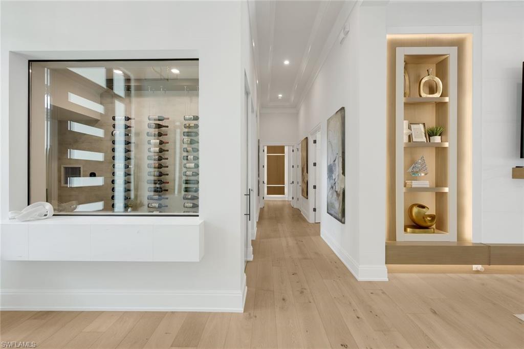 A Modern Coastal Masterpiece in the heart of prestigious Park Shore- offering exclusive access to the private beach park and the opportunity to own or lease a boat slip at the Park Shore Yacht Club. 767 Park Shore Dr is a newly constructed architectural statement just moments from the Gulf’s sugar-white sands, where refined design, modern innovation, and effortless coastal living converge. Spanning nearly 6,500 square feet, this exceptional residence features five en-suite bedrooms, a private study/office, first and second floor laundry, and a bonus/family room-all connected by a private elevator or grand staircase. The home showcases a mastery of craftsmanship, including a climate-controlled wine room, soaring detailed ceilings, bespoke millwork, wide-plank European white oak flooring, and curated designer lighting. The great room, anchored by striking architectural detailing, floor-to-ceiling sliders, and a statement fireplace, flows seamlessly outdoors-blending interior elegance with resort-style living. Outdoors enjoy a private resort setting with a saltwater pool, integrated spa, swim-up bar seating, expansive entertaining areas, lush landscaping, and a fully equipped outdoor kitchen. Motorized integrated screens and Storm Smart hurricane shutters allow for year-round enjoyment. Smart home technology, integrated AV and lighting, advanced security, automated blinds, and a whole-house generator provide modern convenience. The chef’s kitchen features custom cabinetry, dual islands, side-by-side refrigerator/freezers, an 8-burner Miele range, and a Meile steam oven, complemented by a fully equipped butler’s pantry with a built-in Miele coffee and cappuccino station and additional Fisher & Paykel dishwasher drawers. The primary suite is a private sanctuary with a wet bar, soaring beamed ceilings, and dual spa-inspired baths with separate water closets, an expansive multi-function shower, and custom his-and-her closets. Set at 12 feet (per elevation cert) in Zone X the property offers elevation, privacy, and space, complete with a circular drive and split 3-car garage. More than a home, 767 Park Shore Dr is a legacy property minutes to Waterside Shops, 5th Ave S, Third Street S, and Mercato, thoughtfully designed for those who expect nothing less than exceptional.