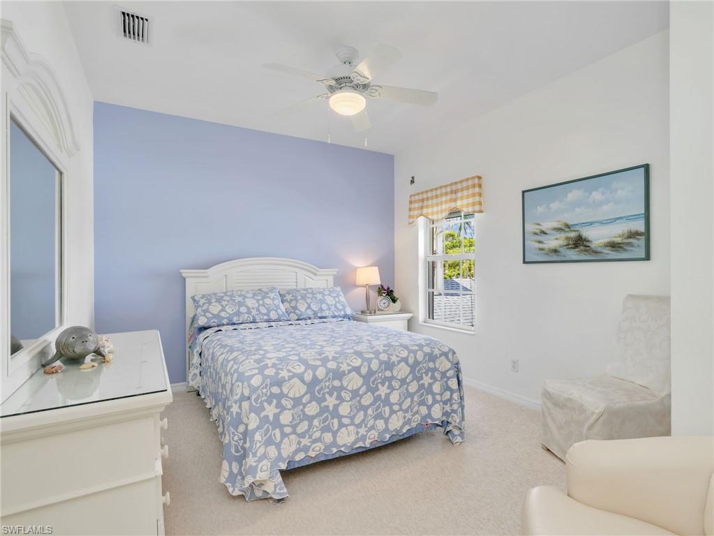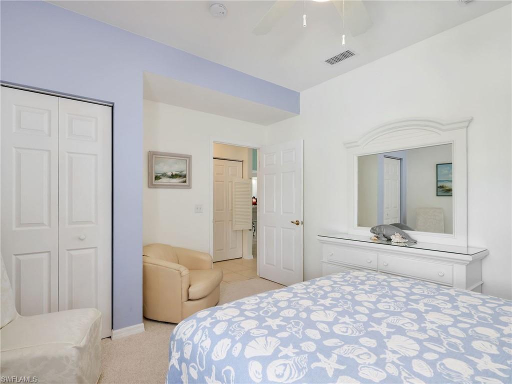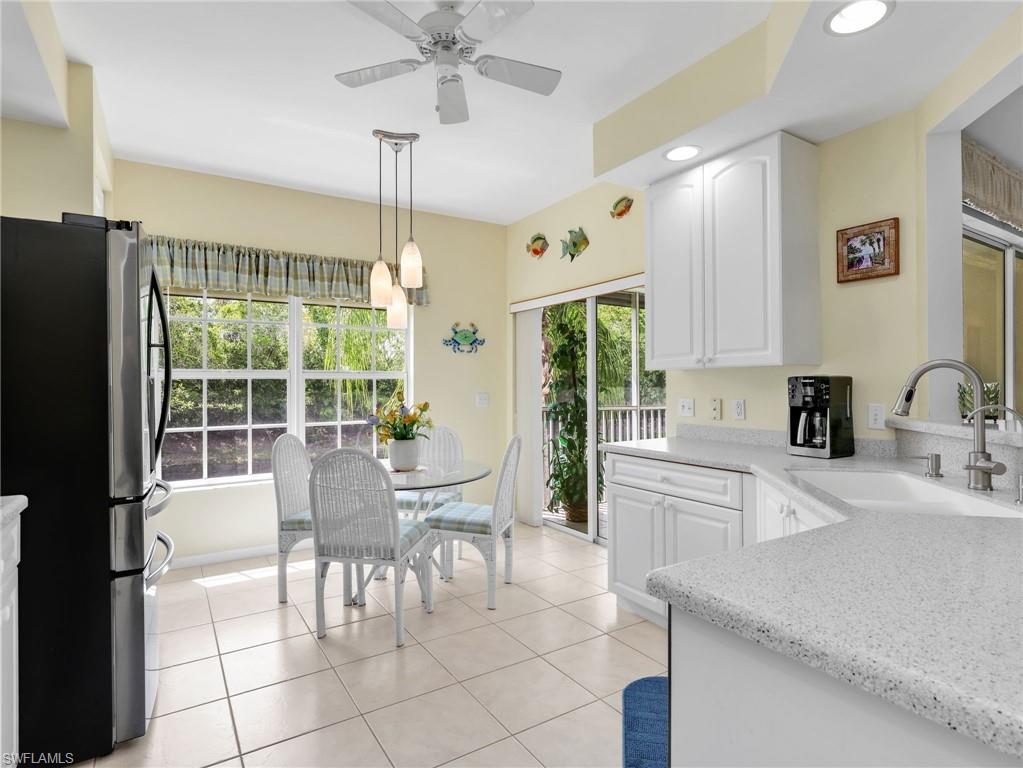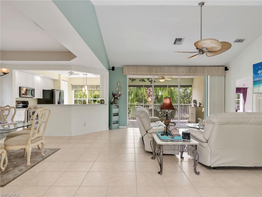 This beautifully turnkey furnished 3-bedroom, 2-bath Antigua model offers a bright, open layout with vaulted ceilings and thoughtful upgrades throughout. Tile flooring runs through the main living areas, while the bedrooms feature new carpet for added comfort. The spacious kitchen is equipped with an upgraded stainless LG appliance package, resurfaced cabinet doors, a pantry, and a charming breakfast bar, all flowing seamlessly into the formal dining area and expansive great room. The great room includes custom built-in cabinetry and opens to a tiled, screened lanai showcasing stunning lake and preserve views. Additional highlights include a brand-new A/C installed at the end of 2025, an attached 2-car garage with an epoxy floor, and a chair lift from the first to second floor. Located in the highly desirable Breckenridge community, residents enjoy a vibrant, resort-style lifestyle with bundled golf, five swimming pools, an active tennis program with eight Har-Tru courts, pickleball, bocce, and a clubhouse filled with daily social activities. Ideally situated in Estero, this home is just minutes from Southwest Florida International Airport, beautiful Gulf beaches, top shopping destinations, dining, a public library, and nearby state parks, with easy access to both Naples and Fort Myers.