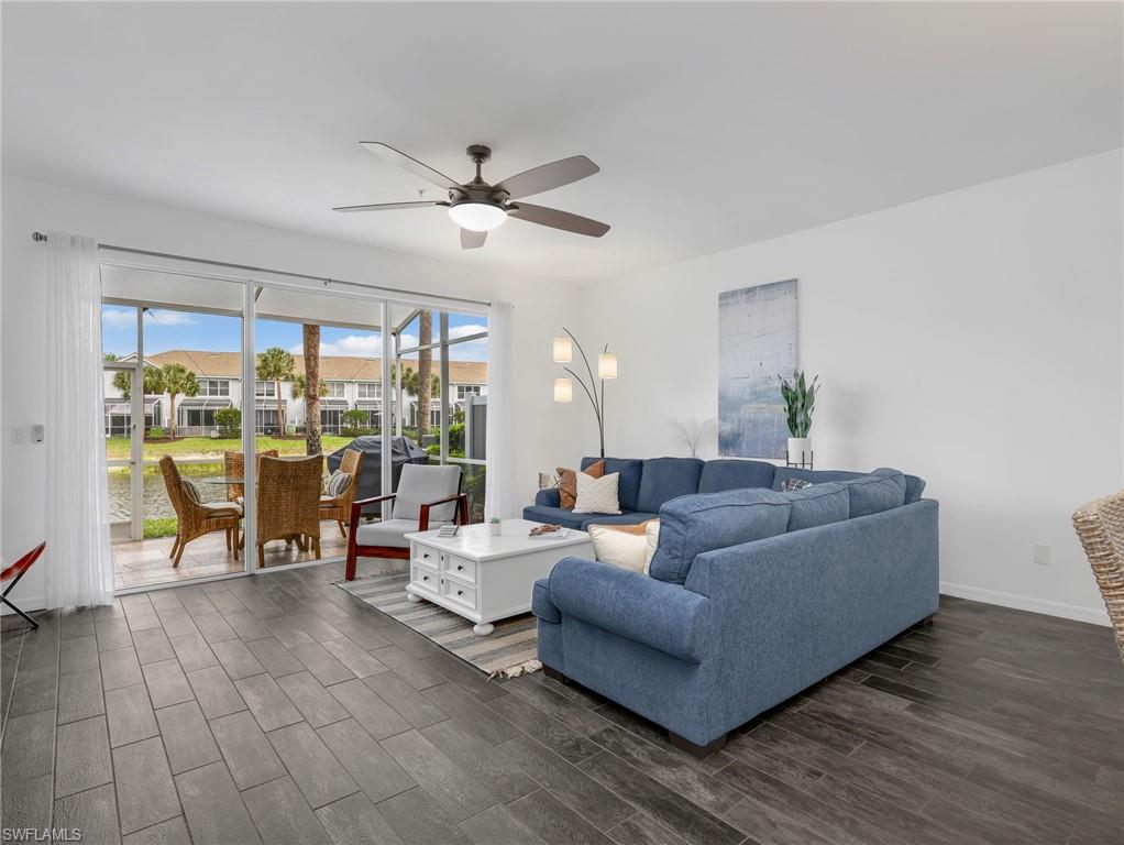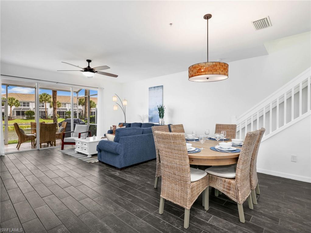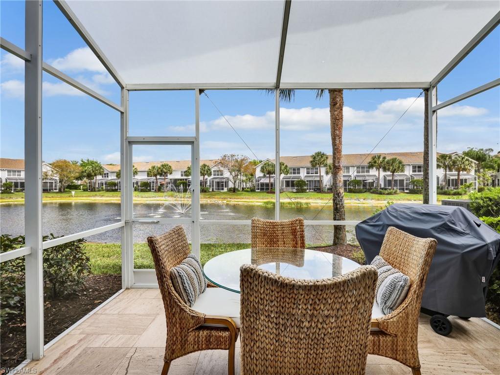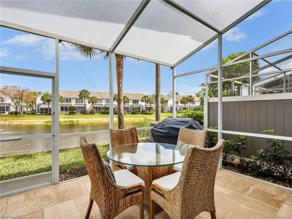 Positioned as a coveted end unit, this 2 car garage, lakefront residence in Milano is filled with natural light—where extra windows, tranquil water views, and a fresh, modern update package come together to create a home that feels instantly brighter, more open, and undeniably elevated. Inside, the home has been freshly painted, setting a clean, cohesive backdrop that enhances the natural light unique to end units. The kitchen is a true standout, featuring expansive quartzite countertops, abundant prep space, and a built-in dry bar and under-counter beverage center. It’s the kind of space that effortlessly supports both everyday living and entertaining. The layout is equally functional, offering generously sized bedrooms and the added convenience of a well-placed half bath on the main level. The indoor-outdoor connection is seamless, with a screened lanai overlooking the lake, enhanced by new screens and Florida glass—adding privacy while keeping out rain and debris, all without sacrificing natural light. The result is a more comfortable, usable space year-round. Whether it’s a quiet morning coffee or an evening unwind, the setting delivers. Milano offers a well-rounded lifestyle with amenities including a community pool and spa, tennis and pickleball courts, basketball court, dog park, and picnic area with barbecue grills. Ideally located in North Naples off Livingston Road, just north of Immokalee Road, you’re minutes from I-75, Wiggins Pass, Vanderbilt Beach, Mercato, Waterside Shops, Seed to Table, and more—served by Veterans Memorial Elementary, North Naples Middle, and Aubrey Rodgers High School. A rare combination of end-unit light, lakefront setting, and impressive updates—this townhome stands out immediately. THERE ARE TWO VIRTUAL TOUR LINKS YOU CAN CLICK ON FOR MORE INFORMATION.