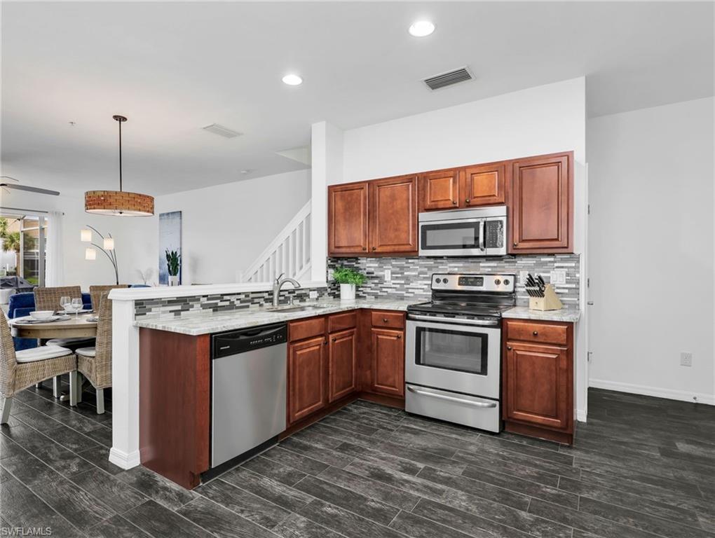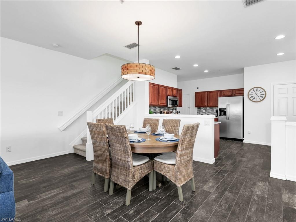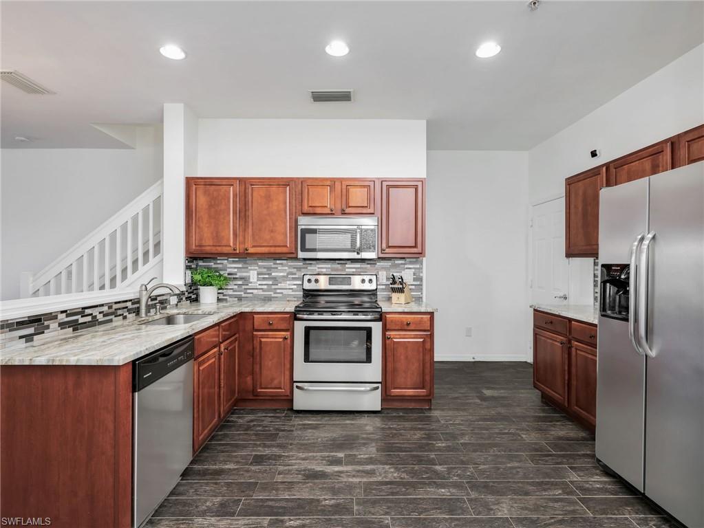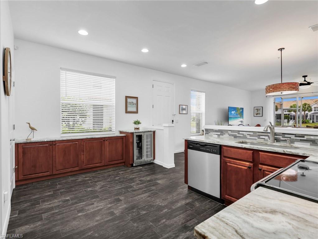 Positioned as a coveted end unit, this 2 car garage, lakefront residence in Milano is filled with natural light—where extra windows, tranquil water views, and a fresh, modern update package come together to create a home that feels instantly brighter, more open, and undeniably elevated. Inside, the home has been freshly painted, setting a clean, cohesive backdrop that enhances the natural light unique to end units. The kitchen is a true standout, featuring expansive quartzite countertops, abundant prep space, and a built-in dry bar and under-counter beverage center. It’s the kind of space that effortlessly supports both everyday living and entertaining. The layout is equally functional, offering generously sized bedrooms and the added convenience of a well-placed half bath on the main level. The indoor-outdoor connection is seamless, with a screened lanai overlooking the lake, enhanced by new screens and Florida glass—adding privacy while keeping out rain and debris, all without sacrificing natural light. The result is a more comfortable, usable space year-round. Whether it’s a quiet morning coffee or an evening unwind, the setting delivers. Milano offers a well-rounded lifestyle with amenities including a community pool and spa, tennis and pickleball courts, basketball court, dog park, and picnic area with barbecue grills. Ideally located in North Naples off Livingston Road, just north of Immokalee Road, you’re minutes from I-75, Wiggins Pass, Vanderbilt Beach, Mercato, Waterside Shops, Seed to Table, and more—served by Veterans Memorial Elementary, North Naples Middle, and Aubrey Rodgers High School. A rare combination of end-unit light, lakefront setting, and impressive updates—this townhome stands out immediately. THERE ARE TWO VIRTUAL TOUR LINKS YOU CAN CLICK ON FOR MORE INFORMATION.