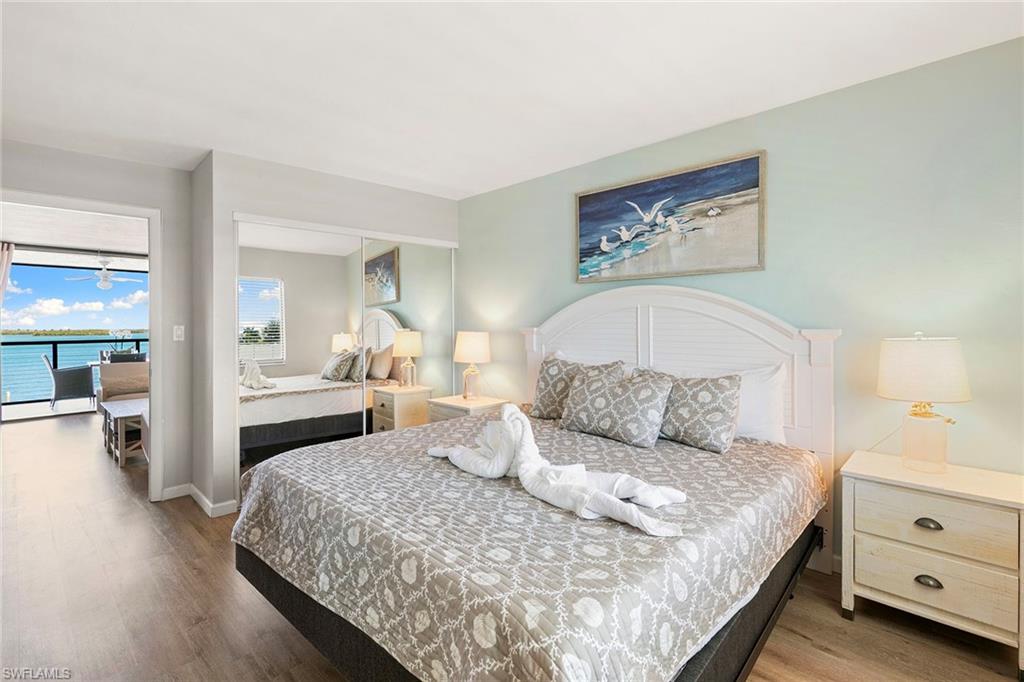 Welcome to Riverside C406, a furnished fourth-floor, one-bedroom, one-bath waterfront condominium on the Marco River with wide-water views from a private screened lanai. Enjoy a front-row perspective of river activity, Pelican Pier Marina, the Jolly Bridge and sunrise views over the pool. The residence offers 800 square feet under air, is nicely maintained, and features luxury vinyl plank flooring plus a bright eat-in kitchen with white cabinetry and a clean-lined, coastal look. Daily rentals are allowed, creating exceptional flexibility for personal use and investment, and the condominium has a strong rental history. Fees include electricity, water, cable with premium channels and internet, along with community amenities. Riverside Club is home to Pelican Pier Marina and offers two pools, a clubhouse, tennis and pickleball courts, a fishing dock and a boat launch. Boat slips are available on a first-come, first-served basis for $400 per year per slip, plus gated, locked boat trailer storage on property. In the heart of Old Marco, close to waterfront dining, outdoor dining, live music venues, shopping and island boating, with nearby bike and boat rentals and local favorites for happy hour. Go onto the lanai, take in the river view and you will understand how easily this becomes your Marco routine.