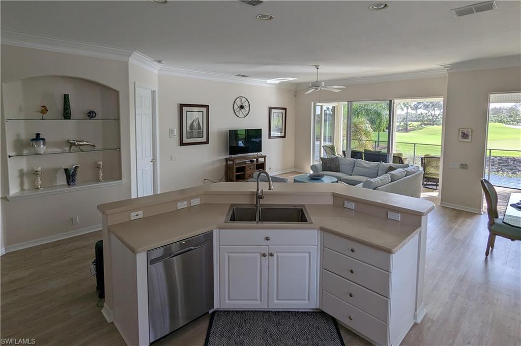 Discover the perfect blend of comfort and elegance in this beautifully maintained condominium located in the heart of Kensington Park. This bright and airy residence features an open-concept floor plan that seamlessly connects the kitchen, dining, and living areas, creating a warm and inviting atmosphere bathed in natural light. Each spacious bedroom serves as a private retreat, complete with oversized walk-in closets for ample storage. Step outside to your private balcony to enjoy serene, picturesque views of the lake and the lush greenery of the golf course. Membership to the Kensington Country Club is optional, with several membership levels available that provide access to premier amenities such as championship golf, tennis, pickleball, bocce, a resort-style pool, and a vibrant clubhouse. Whether you are seeking a seasonal escape or a permanent Naples residence, this property provides a sophisticated lifestyle in an unbeatable location.