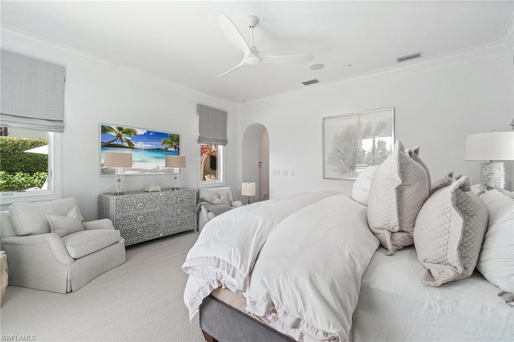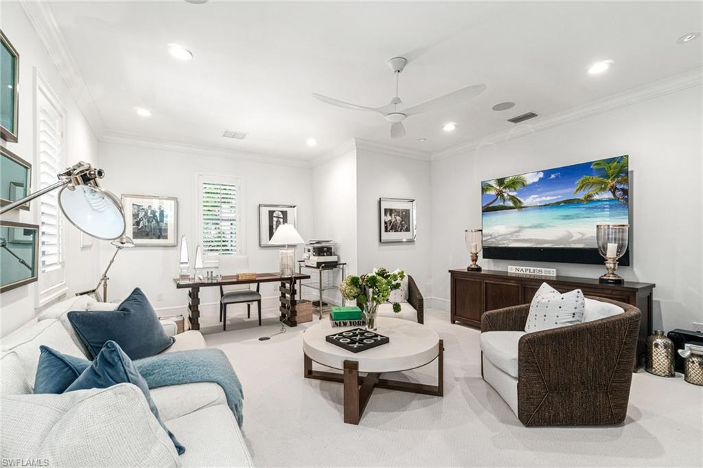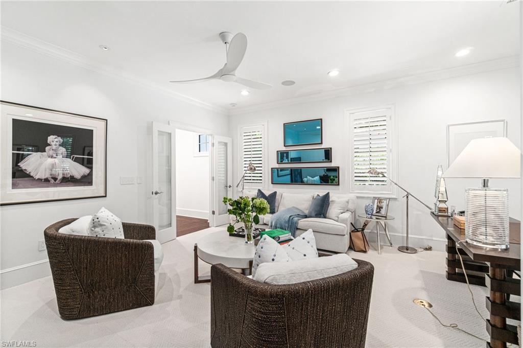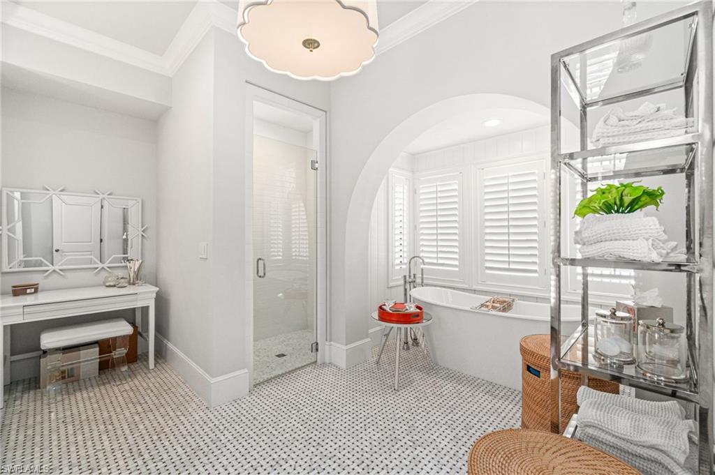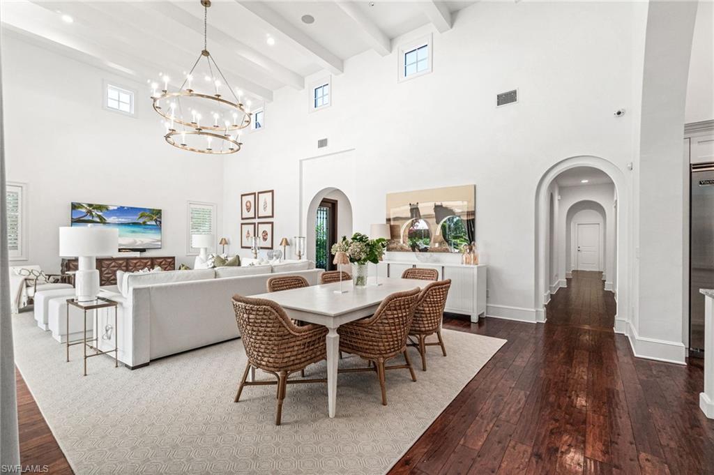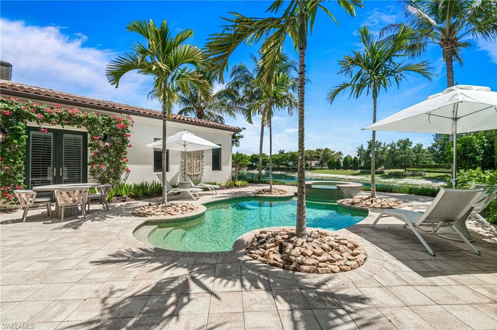 Rarely available, this former London Bay Homes model represents the pinnacle of villa living in one of Naples’ most celebrated gated luxury communities. Ideally positioned on a premium Southern exposure homesite, the home commands sweeping, sun-drenched views over a serene lake and Lucarno’s iconic parterre gardens — a breathtaking tableau enjoyed from virtually every principal living space. From the moment you arrive, the architecture transports you to the rustic villages of Northern Italy, with cobblestone paving, barrel tile roofing, and ornate stone detailing that set the stage for the exceptional craftsmanship within. Inside, soaring 18-foot ceilings in the great room create a dramatic sense of arrival, while an abundance of natural light and curated sightlines frame the lush garden and water views beyond. Featuring an incredible master suite with oversized custom walk in closet. The home was finished to the highest standard, showcasing a bespoke package of custom upgrades — from designer light fixtures and cabinetry, premium stone selections to refined millwork and elevated interior appointments throughout. Interiors were thoughtfully curated by Romanza Interior Design(and refreshed in 2020), ensuring every detail reflects both beauty and livability. The seamless indoor-outdoor flow leads to a covered loggia with outdoor kitchen, perfect for alfresco dining beneath the Naples sky. Remote-controlled roll-down screens provide year-round comfort, while the private pool and spa complete this exceptional outdoor retreat. Offered within Mediterra Golf & Beach Club — a 1,697-acre gated community featuring two Tom Fazio championship golf courses, Har-Tru tennis, pickleball, bocce, a state-of-the-art fitness center, spa, and an exclusive 10,000-square-foot private Beach Club on the Gulf of Mexico. A new $38M Sports & Lifestyle Center is now under construction, further elevating the Mediterra lifestyle.