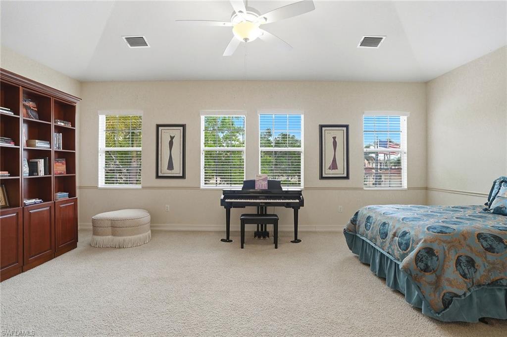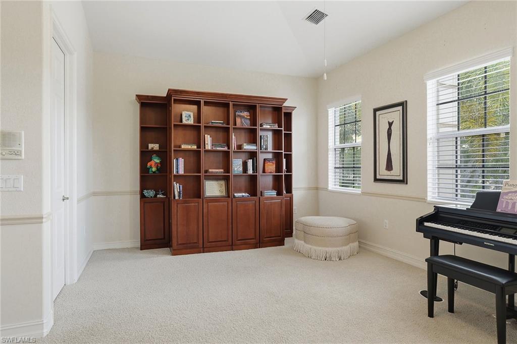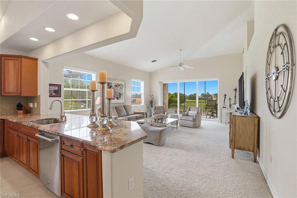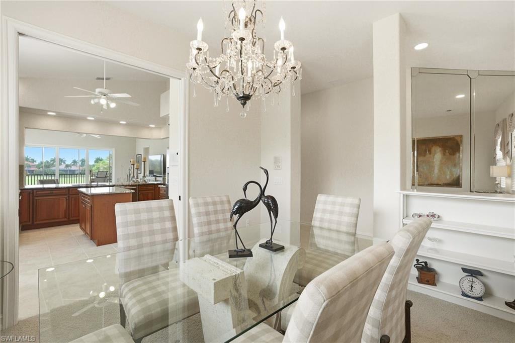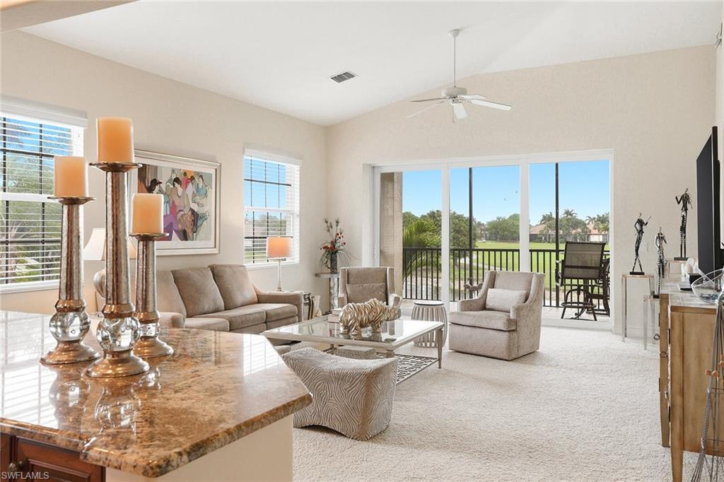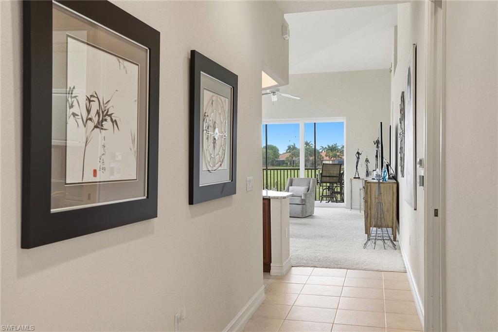 Welcome to Champions at Lely Resort—an exclusive enclave often regarded as one of Naples’ most refined hidden gems. From the moment you arrive, you are welcomed by a private, beautifully appointed entry foyer, where a sweeping staircase or your own personal elevator carries you to the main living space, setting the tone for the sophistication that awaits. Encompassing 2,686 square feet, this exceptional residence lives with the comfort and privacy of a single-family home. Expansive living areas are adorned with 18-inch tile, while plush designer carpeting adds warmth and refinement to the bedrooms. The thoughtfully designed split-bedroom floor plan ensures both comfort and privacy, featuring an oversized guest suite complete with a custom Murphy bed, a generous walk-in closet, and a beautifully finished en-suite bath with a tiled shower and polished chrome fixtures. A light-filled den offers a serene and versatile space—ideal for a private study, library, or elegant home office. At the heart of the home, the gourmet kitchen is both stunning and functional, appointed with custom cabinetry, gleaming granite countertops, a spacious serving island, GE stainless steel appliances, and a charming breakfast nook. All are perfectly positioned to capture sweeping views of the tranquil lake and manicured golf course beyond. The grand living room is designed for both relaxation and entertaining, seamlessly extending to a spacious screened lanai. Here, you can unwind while enjoying panoramic water and golf course vistas, all illuminated by Naples’ famed, breathtaking sunsets. The primary suite is a private sanctuary, featuring an expansive walk-in closet and a luxurious bath complete with dual vanities, a dedicated makeup counter, and a separate soaking tub and glass-enclosed shower—creating a true spa-like retreat. Residents of Champions enjoy access to a peaceful, resort-style pool area, all while being just moments from Naples’ pristine beaches, upscale shopping, fine dining, and vibrant cultural attractions. Membership to The Players Club & Spa is available, offering an enhanced lifestyle experience, yet remains entirely optional.