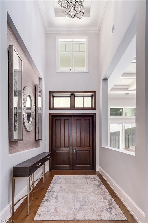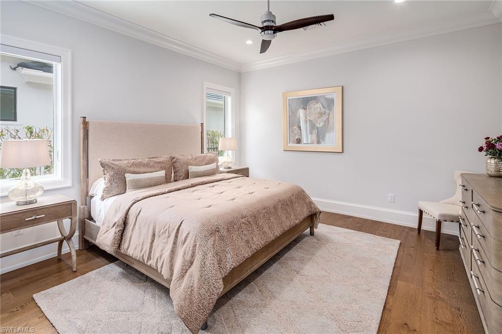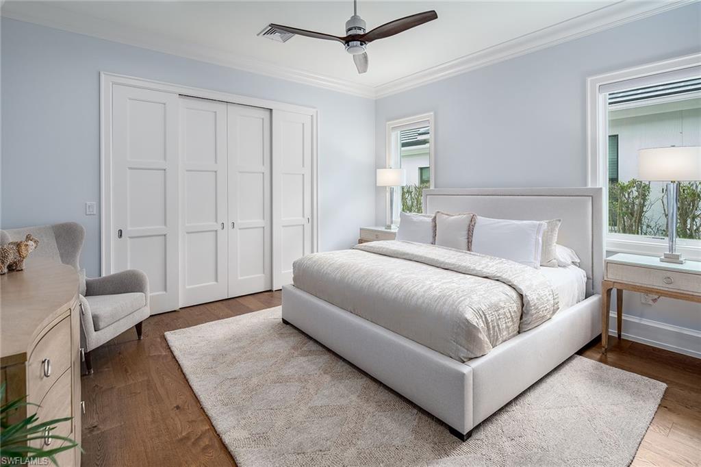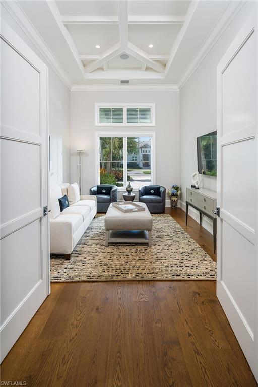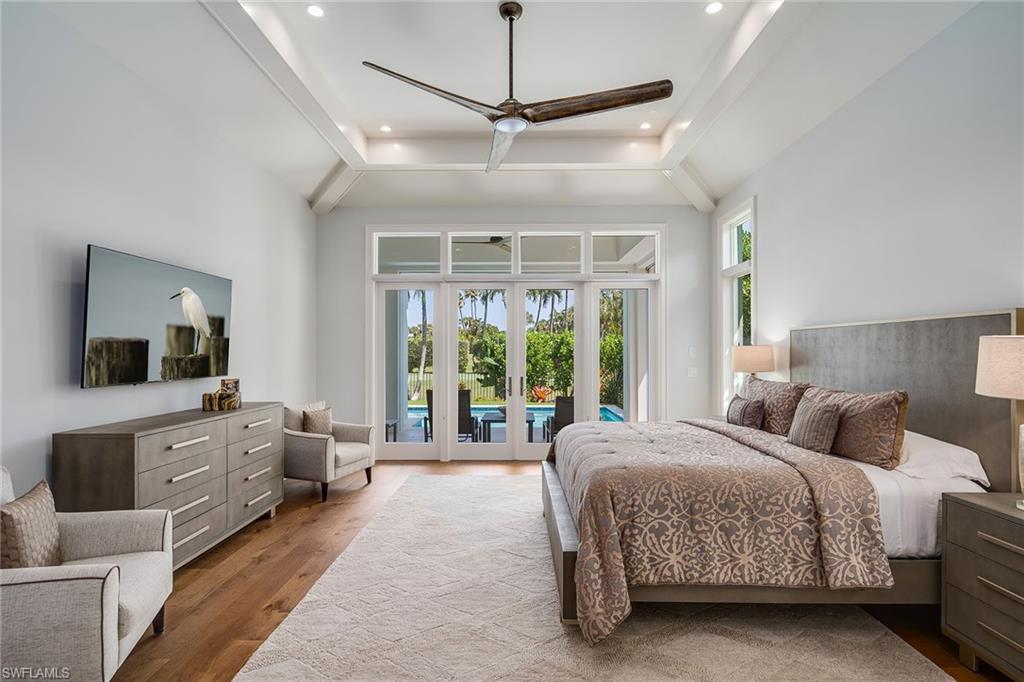 This luxury home built in 2019 is in the beautiful tree-lined neighborhood of the Moorings, one of Naples exceptional coastal communities. Upon entering the front doors, you are welcomed with wonderful views of the 18th tee on the private Moorings Country Club. The single-level, open floor plan has been artfully designed with a neutral palette, creating a lovely and relaxing ambiance. The four en-suite bedrooms, four- and one-half baths, large office and expansive custom kitchen easily open up to the comfortable outdoor living area for year-round entertaining with family and friends. The quality and high- end features include Sub-Zero/Wolf and Bosch appliances, wide plank wood flooring, Sonos sound, retractable screens and shutters, Anderson windows, 38-kilowatt generator and a large three-car garage. The property is in an X Flood zone as well. Minutes from the Moorings private beach, the fine dining of delightful Old Naples, and fabulous shopping in Waterside Shoppes and Venetian Village.