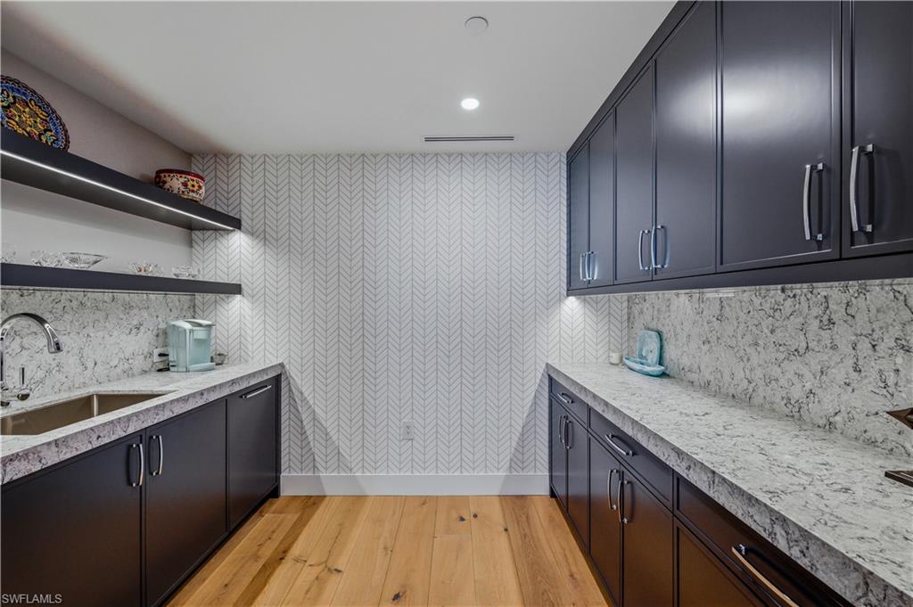 Positioned in the highly sought-after Tower 200 at Kalea Bay—widely regarded for its exceptional privacy and unobstructed lanai views, this stunning ninth-floor residence offers an effortless blend of sophistication, comfort, and coastal elegance. Spanning four bedrooms and four-and-a-half baths, the home is thoughtfully designed to balance refined entertaining with private retreat. Three guest suites feature walk-in closets and beautifully appointed en-suite baths, offering a level of comfort and privacy rarely found. Rich wood flooring flows throughout, complemented by custom built-ins, and a striking feature wall anchoring the main living space. The residence is offered furnished, creating a seamless, furnished opportunity. The chef’s kitchen is both functional and visually impressive, centered around a dramatic waterfall island and supported by a fully equipped butler’s pantry that easily serves as a secondary kitchen. Outfitted with Wolf and Sub-Zero appliances, including a natural gas cooktop, convection oven, and additional steam/convection oven, the space is designed for both everyday living and entertaining at scale. Automated shading in every bedroom enhances comfort and convenience. The owner’s suite serves as a true retreat, framed by serene Gulf waters. The adjoining spa-inspired bath features dual vanities, an expansive walk-in shower, and a beautifully designed custom closet. Extending the living space outdoors, the expansive lanai—over 500 square feet—functions as a private sanctuary, complete with screen doors that invite in soft Gulf breezes and create a seamless indoor-outdoor experience. This residence is more than a home—it is an invitation to live within a private, five-star resort at Kalea Bay, where world-class amenities, waterfront living, and effortless luxury define everyday life. Beyond your residence, Kalea Bay offers an unmatched coastal experience with access to The Club at Kalea Bay—a world-class destination featuring resort pools, multiple dining venues, an extraordinary wellness center, and the luxury of a true “everyday vacation” lifestyle. Tower 200 adds its own signature touch with a stunning rooftop pool deck and open-air fitness, creating the ultimate setting to unwind, recharge, and take in the views from above. A rare opportunity to own a residence that combines high design, resort amenities, and the exceptional lifestyle that defines Kalea Bay.