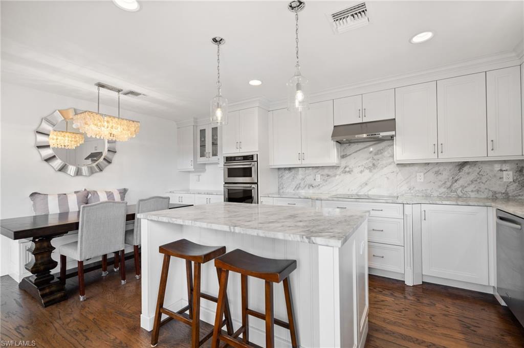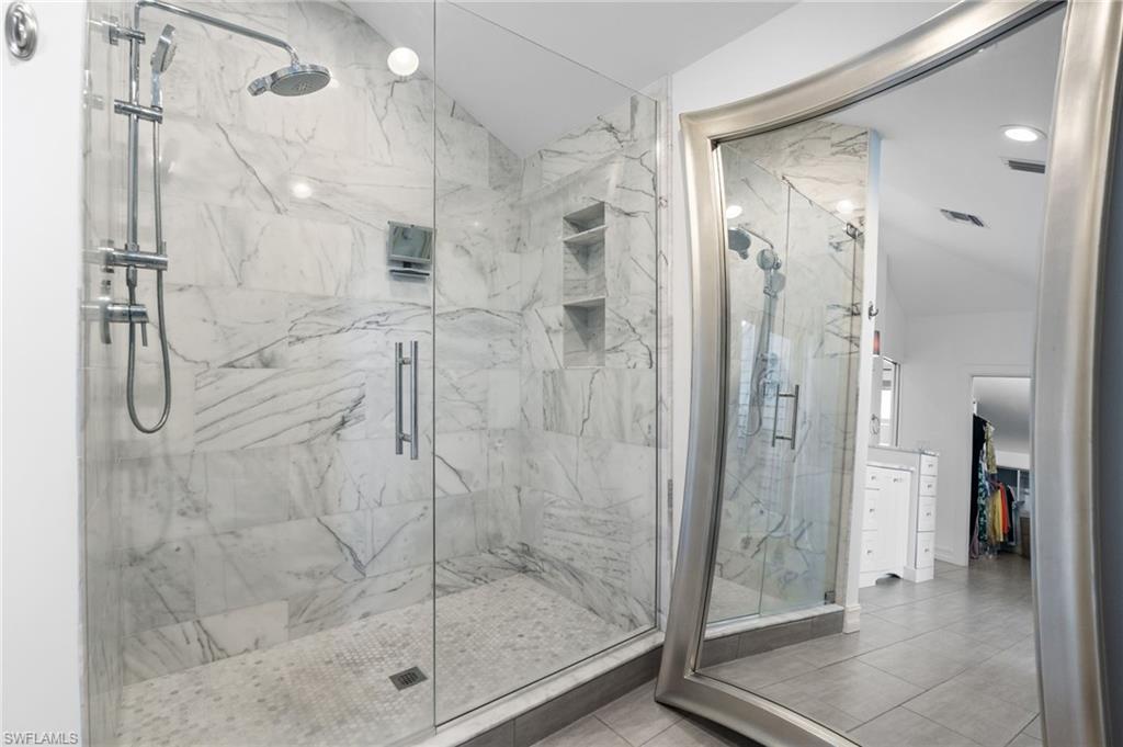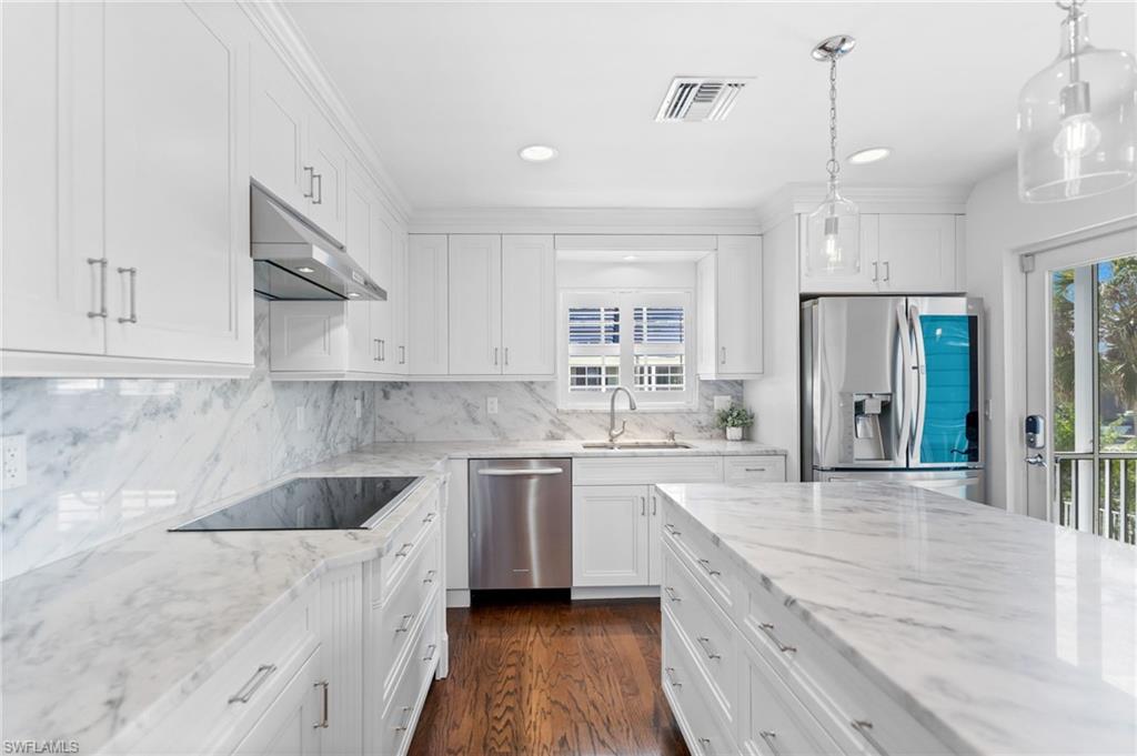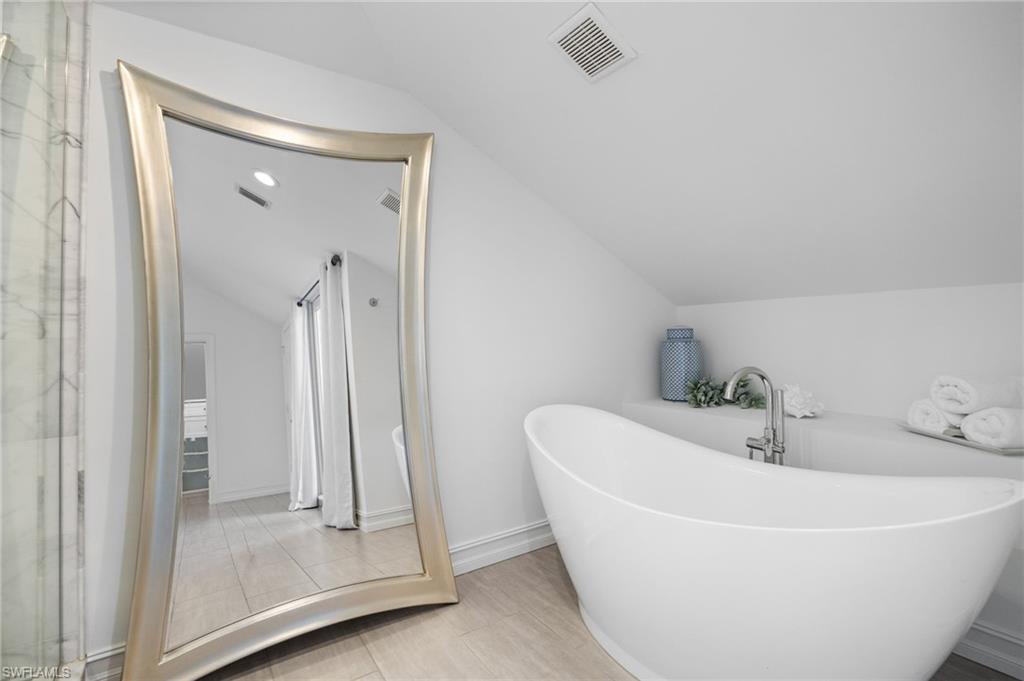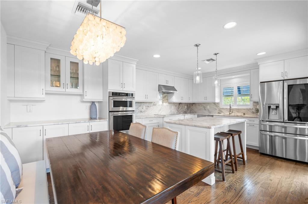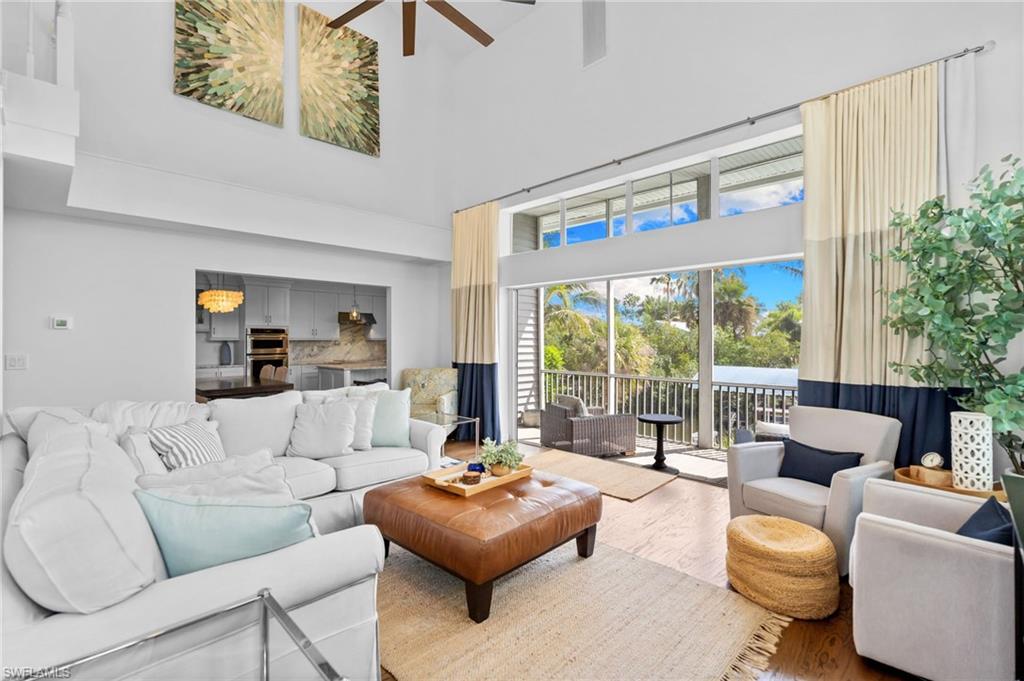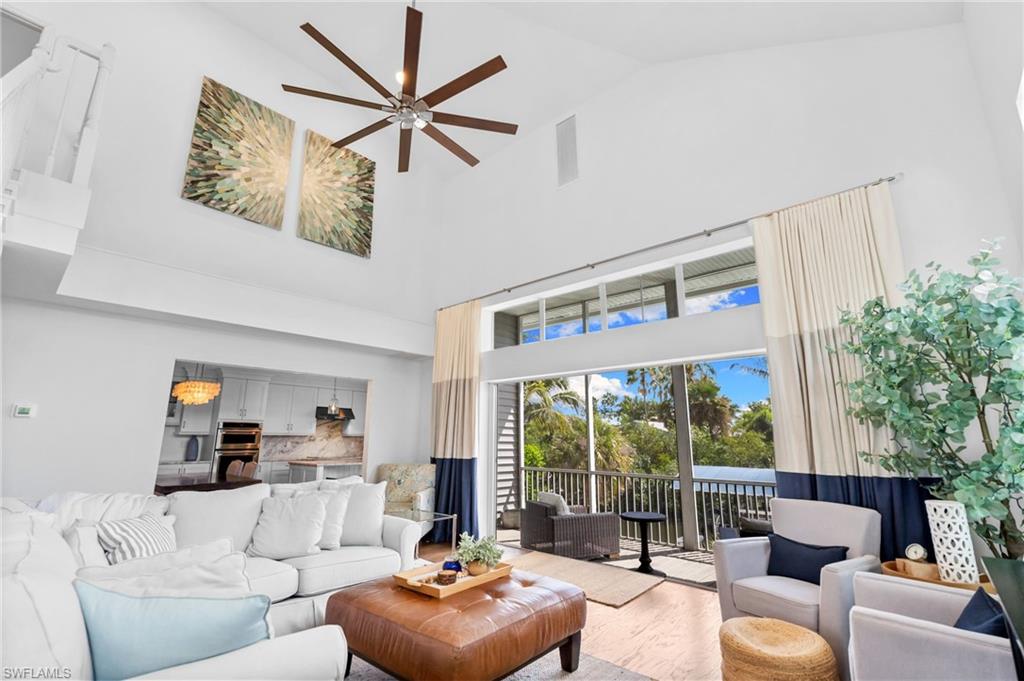 One or more photo(s) has been virtually staged, AI generated or rendered. Opportunities like this are rare—especially at this price point. It’s hard to find a property that truly checks every box: your boat right in your backyard with direct Gulf access, a private pool, 3 bedrooms plus a guest retreat, 3 full bathrooms, a quiet cul-de-sac location, and no HOA restrictions—all combined into one complete North Naples lifestyle package. Whether you’re looking for a full-time residence, seasonal escape, or investment-friendly waterfront option, this property delivers flexibility, lifestyle, and long-term value. The main living level—elevated high above flood—offers both peace of mind and impressive design, featuring a beautiful kitchen with high-end finishes and a clever booth-style dining area. Soaring ceilings in the living room and expansive rear sliders flood the space with natural light, opening fully to overlook the pool and canal for seamless indoor-outdoor living. This level also includes two guest bedrooms and a full bathroom, creating a functional and well-balanced layout. The entire third level is dedicated to the primary suite, offering a true private retreat. Enjoy a spa-style bathroom with soaking tub, dual vanities, and a multi-head tile shower, along with a spacious walk-in closet. Private balconies on both the east and west sides capture sunrise and sunset views, while the elevated position delivers beautiful sky views above the treetops. Adjacent to the pool, a covered cabana-style space leads to a full guest suite with additional sleeping space and its own full bathroom—complete with a private entrance, creating a true separate retreat for guests. Outside, enjoy a private pool overlooking the canal with direct boating access right from your backyard—an extremely rare feature in this neighborhood. Southern exposure fills the pool area with natural light, complemented by multiple outdoor living spaces for dining and lounging. A fully equipped dock and boat lift are already in place, making it effortless to get out on the water. A 24’ Bennington pontoon is currently housed here and may be purchased separately. Additional highlights include a 3-stall garage with two bays plus a tandem deep third bay—ideal for extra vehicles, storage, or boating gear. The home can be offered turn-key furnished, creating a true move-in-ready opportunity—just bring your toothbrush. Tucked away on a quiet cul-de-sac yet close to Naples’ top dining, shopping, and beaches, this property delivers the ideal blend of privacy and convenience.