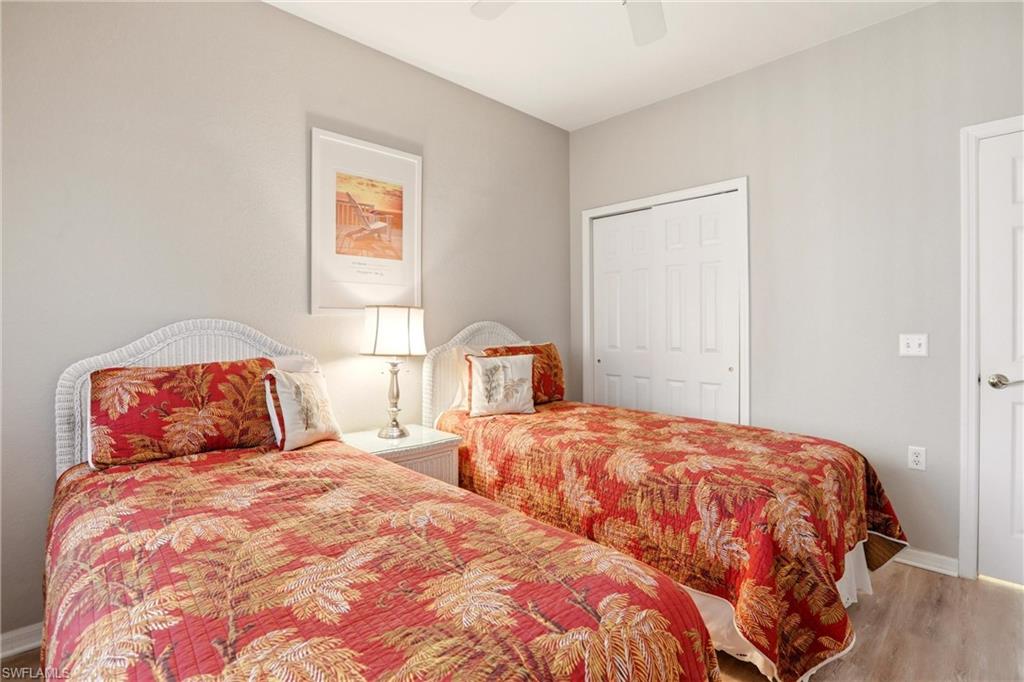 Enjoy easy Florida living in this turnkey furnished condominium located within the desirable golf community of Naples Lakes Country Club. Offering a fresh, move-in-ready feel, this well-maintained residence features white kitchen cabinetry, new granite countertops, CoreTEC flooring, fresh interior paint, and stainless steel appliances. The generously sized kitchen is designed for everyday convenience, offering multiple dining spaces including a breakfast nook, breakfast bar, and a separate dining room. The comfortable, light-filled layout supports both relaxed living and effortless entertaining, while neutral furnishings allow you to settle in immediately and personalize the space over time. The primary suite is equally inviting, featuring dual sinks, a large walk-in closet, and direct access to the lanai, adding natural light and an easy indoor-outdoor flow. The screened lanai provides peaceful golf course views framed by a natural preserve backdrop, creating a sense of privacy and connection to nature—where sightings of exotic birds, deer, and the occasional alligator add to the charm of the Southwest Florida setting. A private 2-car garage under the building, available to only select residences, provides secure parking and extra storage—an uncommon and highly valued benefit in condominium living. Naples Lakes Country Club is a bundled golf community offering exceptional amenities, including unlimited golf on an 18-hole Arnold Palmer–designed championship course, a full-service clubhouse with restaurant and dining room, Har-Tru tennis courts with professional staff, a full fitness center, pickleball, bocce, a 24-hour guarded gate with patrolled security, and a full social calendar featuring holiday events, 9 & Dines, member-member tournaments, club championships, and more, all just 7 miles from downtown Naples, Fifth Avenue South, and Naples’ beautiful white-sand beaches.
