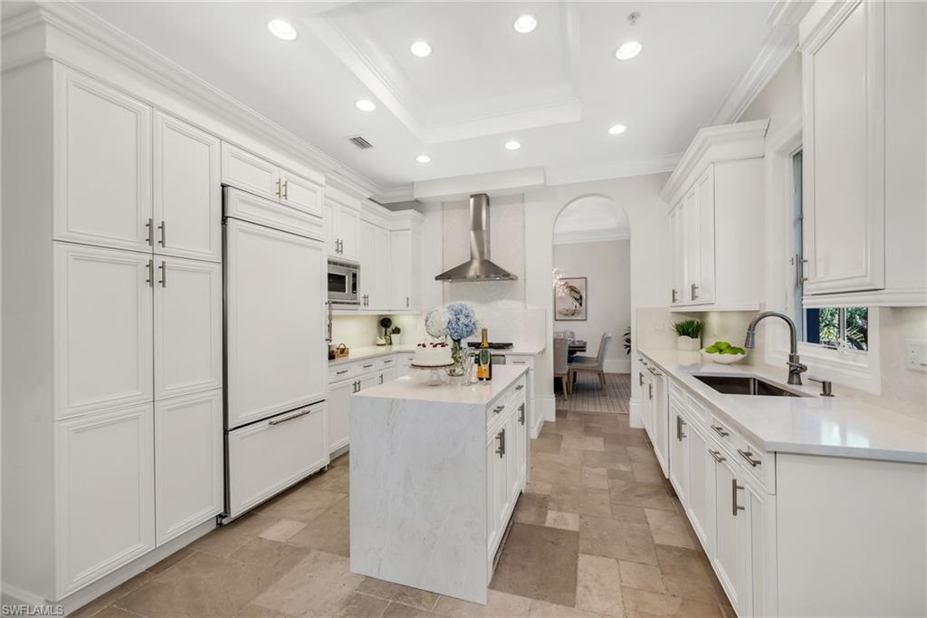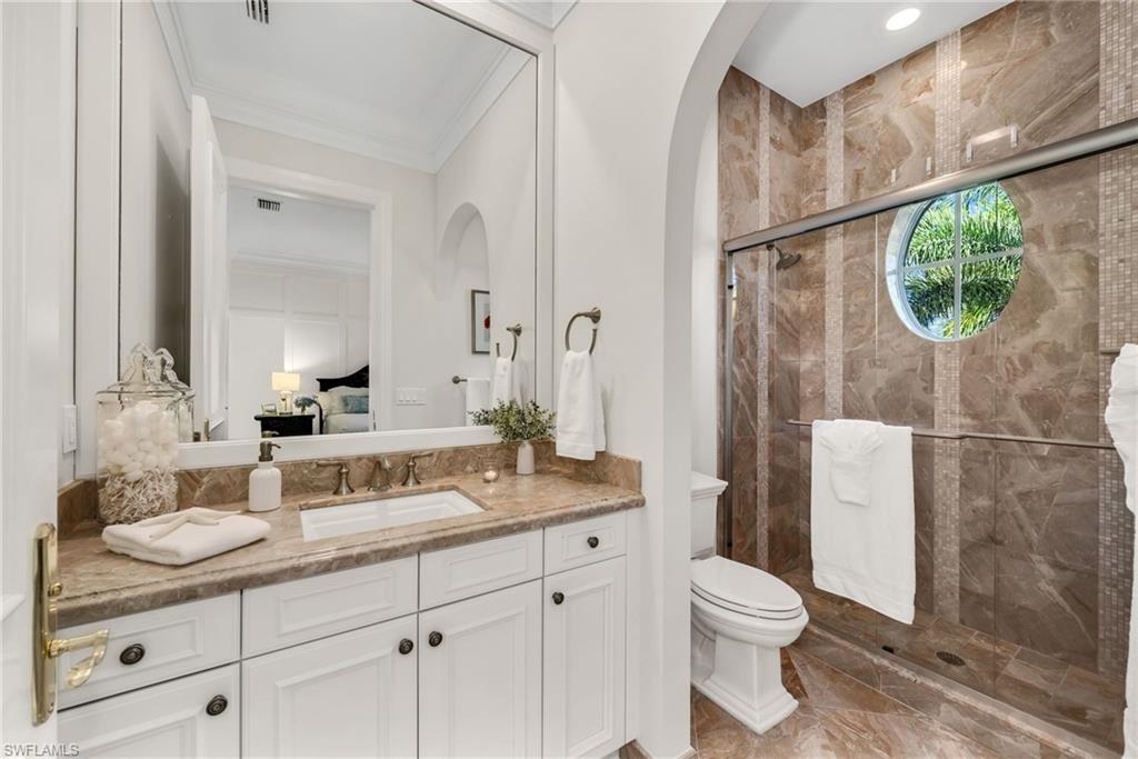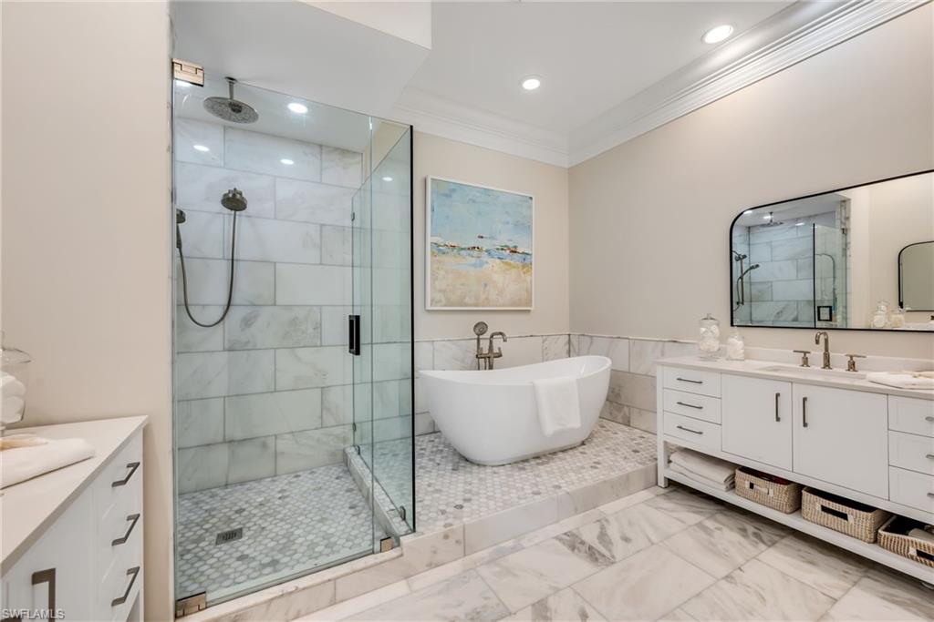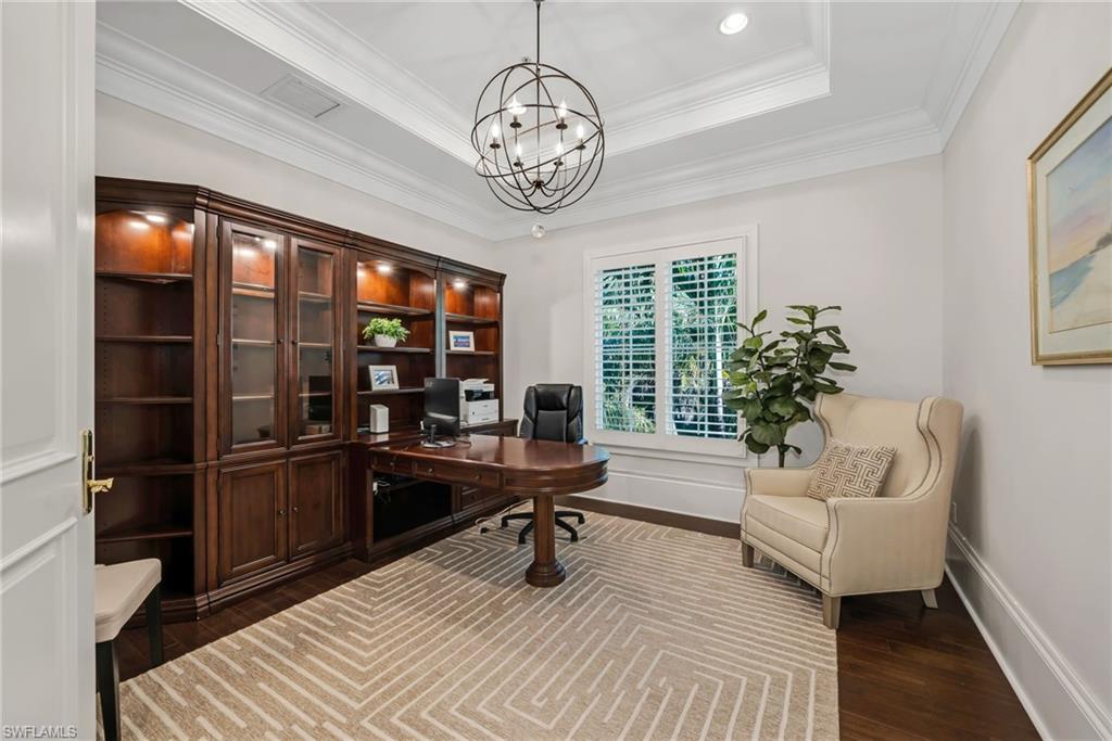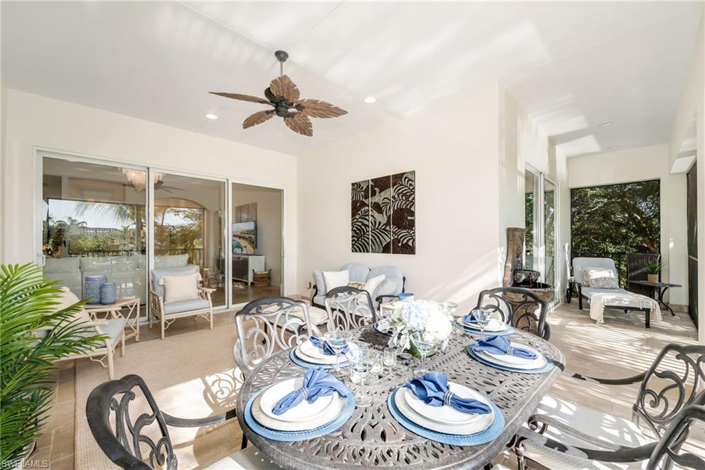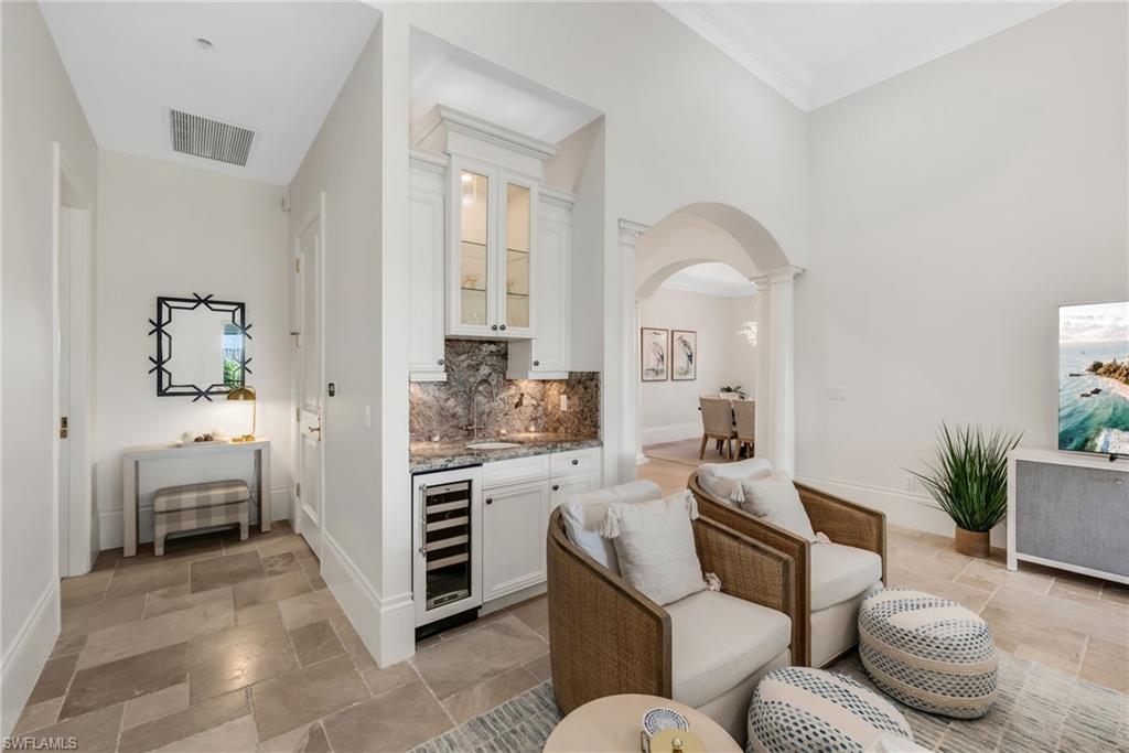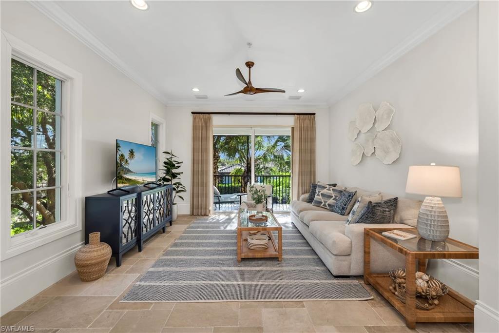 This beautifully reimagined residence offers a refined, move-in ready lifestyle defined by thoughtful design, elevated finishes, and an abundance of natural light. Built in 2008 and encompassing over 3,000 square feet under air, the condominium lives like a private home, with a spacious layout, two-car garage, and an expansive wraparound screened lanai overlooking tranquil water views. From the moment you enter, the interiors reflect a cohesive, designer-curated aesthetic, thoughtfully coordinated with Chicago-based designer Andy Clymore. High ceilings, generous moldings, and freshly repainted interiors create a light, sophisticated backdrop, complemented by custom designer lighting and LED illumination throughout. The main living areas are both elegant and inviting. The living room, enhanced by a custom bar and refined furnishings, flows seamlessly into a spacious dining area ideal for entertaining. The family room and dinette open to the wraparound lanai through sliding glass doors, creating a seamless indoor-outdoor connection and capturing beautiful eastern light. The kitchen has been tastefully updated with quartz surfaces, a custom backsplash, and a striking waterfall island, complemented by abundant custom cabinetry and a clean, modern aesthetic—designed for both everyday living and effortless hosting. The primary suite offers a serene retreat, complete with generous proportions, dual closets, and a beautifully reimagined bath featuring new cabinetry, fixtures, a soaking tub, and a refined spa-like shower. Two additional guest suites provide comfort and privacy, each with well-appointed baths and updated finishes, while a large office with custom cabinetry offers flexibility for work or relaxation. Enhancements throughout include a new white oak stair baluster and handrail system, one updated air conditioning system, impact windows and doors, elevator, and a tankless water heater. A new roof in 2025 further adds to the home’s appeal and peace of mind. Outdoor living is exceptional, with a spacious wraparound screened lanai designed for both relaxation and entertaining. Newly refreshed furnishings create a comfortable and inviting setting to enjoy peaceful water views and gentle morning light. Grey Oaks is one of Naples’ most prestigious private golf communities, offering three championship golf courses, two elegant clubhouses, and multiple dining venues. Residents enjoy a 30,000-square-foot Wellness Center with spa services, tennis, pickleball, bocce, and a vibrant, year-round social calendar. Centrally located, Grey Oaks provides effortless access to downtown Naples, the Gulf’s white-sand beaches, and exceptional shopping and dining—making it one of the most desirable addresses for those seeking both luxury living and an active, connected lifestyle. Welcome home!