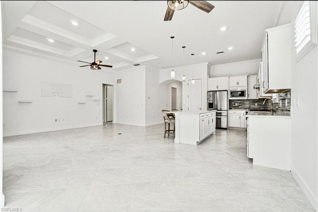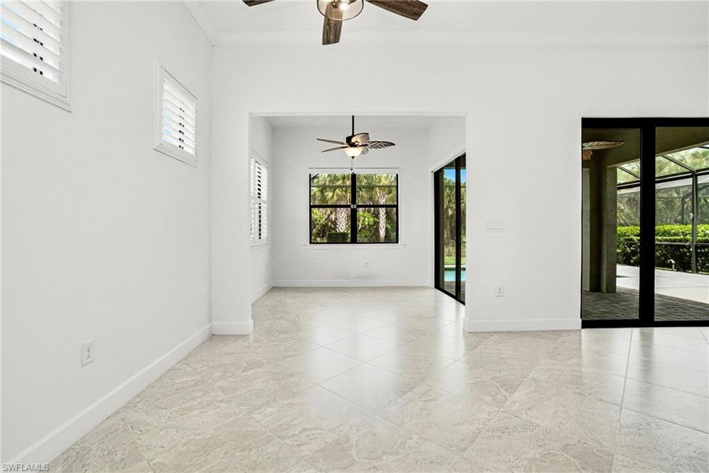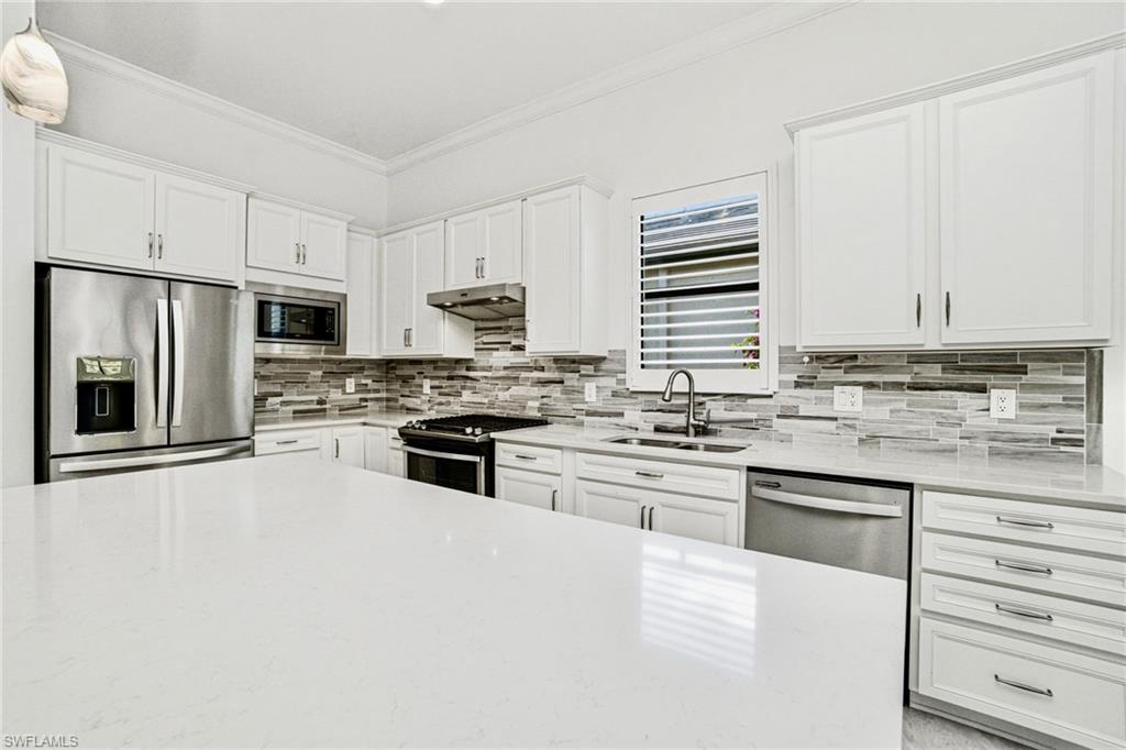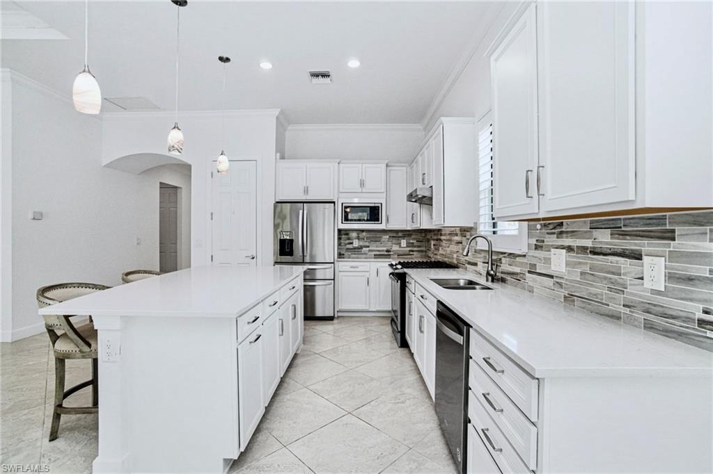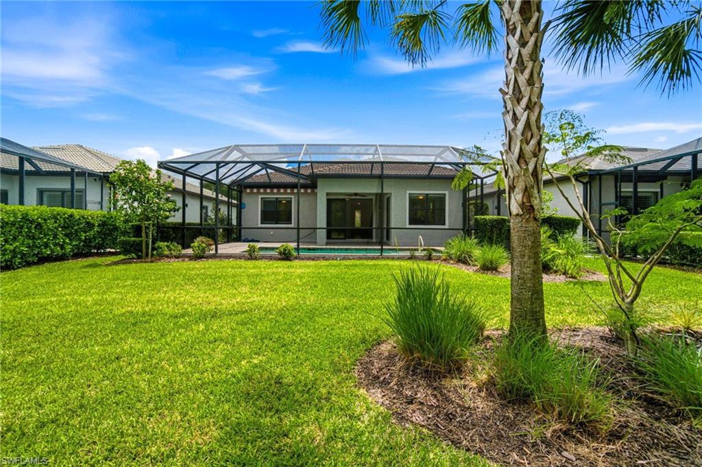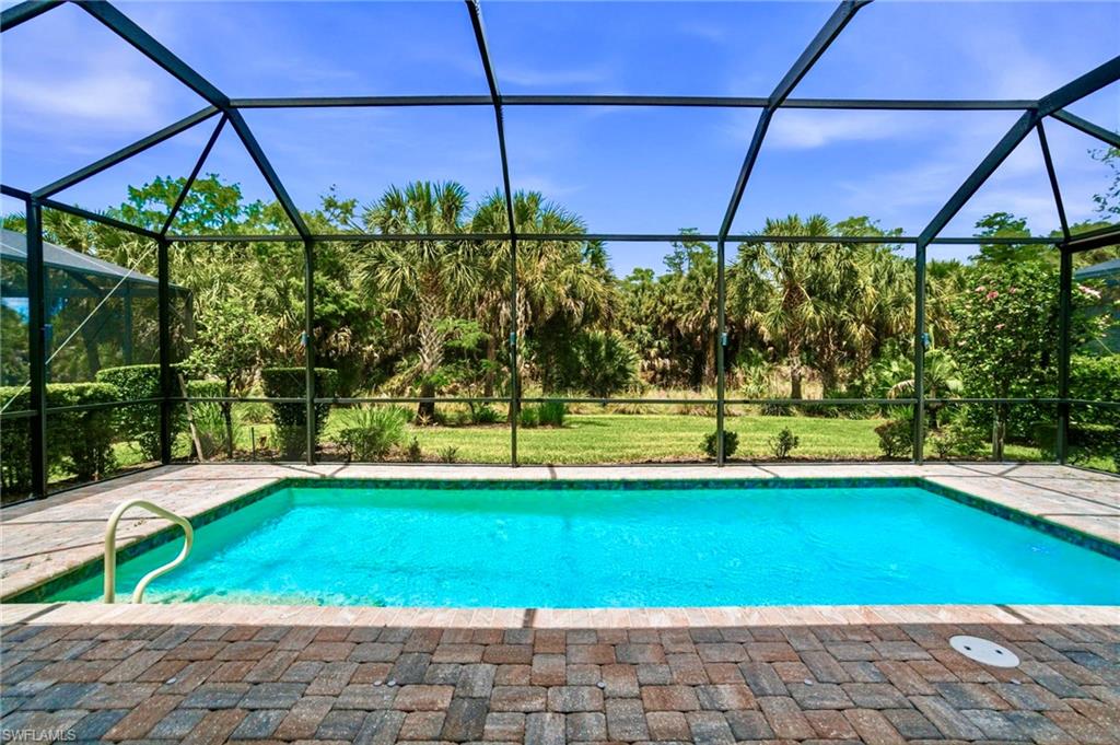 One or more photo(s) has been virtually staged, AI generated or rendered. Beautiful 2020-BUILT POOL HOME with PEACEFUL WOODED PRESERVE VIEWS in the coveted Naples community of GREYHAWK. For GOLFERS explore an OPTIONAL MEMBERSHIP to the adjacent Golf Club of the Everglades with immediate availability to the Member-in-Waiting Golf program & Full Golf estimated within 2026 (buyer to confirm current availability with Membership Director, Listing Broker/Seller make no guarantees). Impeccably maintained, this "Abbeyville" model residence features an OPEN-CONCEPT floor plan with 2 bedrooms + a den, 2 bathrooms, premium oversized marble-look tile flooring laid on the diagonal, coffered ceilings in the living room, and abundant natural light throughout. The CONTEMPORARY "NATURAL GAS" KITCHEN is beautifully appointed with crisp WHITE CABINETRY, QUARTZ COUNTERS, MARBLED BACKSPLASH in warm earth tones, and stainless-steel appliances including a gas range. Expansive sliding glass doors open to your private outdoor retreat, where a SPACIOUS POOL DECK awaits—complete with an ELECTRIC AWNING for flexible shade or sun, a natural GAS-HEATED POOL and SERENE PRESERVE VIEWS. Additional highlights include a 2020 TILE ROOF, WHOLE-HOUSE GENERAC NATURAL GAS GENERATOR, a two-car attached climate-controlled garage with epoxy flooring, a private den with glass French doors, attractive stone detailing on the front elevation, and extensive landscape lighting throughout the property. Residents of Greyhawk enjoy a gated, amenity-rich lifestyle including a Social Membership to the Golf Club of the Everglades, a resort-style pool, on-site restaurant and bar, fitness center, walking trails, tennis and pickleball courts. For GOLFERS explore an OPTIONAL MEMBERSHIP to the adjacent Golf Club of the Everglades with immediate availability to the Member-in-Waiting Golf program & Full Golf estimated within 2026 (buyer to confirm current availability with Membership Director, Listing Broker/Seller make no guarantees). Ideally located just minutes from Naples’ pristine beaches, as well as the shopping, dining, and entertainment of Mercato and downtown Naples.