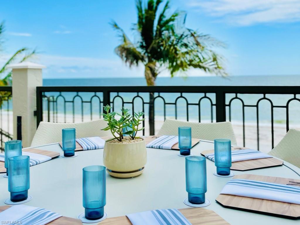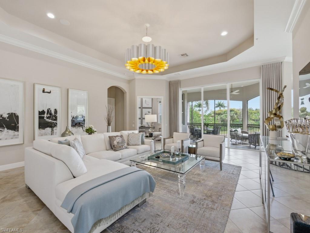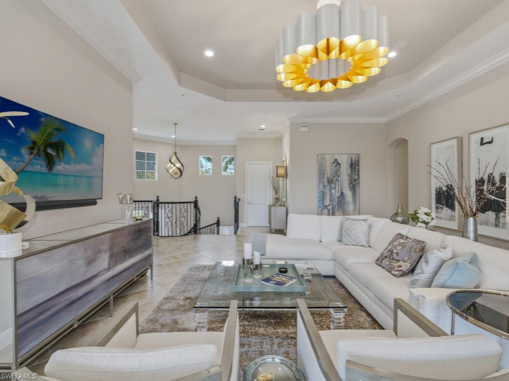 Fully reimagined and impeccably furnished, this second-floor Calabria residence captures sweeping lake views and refined coastal elegance within Mediterra. Spanning nearly 2,900 square feet, the light-filled great room floor plan showcases volume ceilings, wide-plank wood and tile flooring, and a seamless flow to the expansive screened lanai—perfectly positioned for tranquil water vistas and sunset skies. The designer kitchen is a true centerpiece with oversized island, gas cooking, custom cabinetry, and curated finishes, opening effortlessly to both formal and casual dining spaces. A private owner’s suite offers a serene retreat with spa-inspired bath, dual vanities, soaking tub, and walk-in shower, while two guest suites and a den provide comfort and flexibility for family or visitors. Complete with a two-car garage and located just steps from neighborhood amenities, this residence also includes access to Mediterra’s world-class club, featuring private beach club, championship golf, tennis, fitness, dining, and more. Mediterra is a prestigious luxury golf & beach club community featuring two championship Tom Fazio golf courses for avid golfers, a private beach club with a restaurant & bar, multiple tennis courts, pickleball & bocce, a fitness center, pristine bike & jogging trails, and luxurious dining at the private country club restaurant. The Mediterra Beach Club offers an escape to a 10,000 sq. ft two-story private oceanfront paradise on the Gulf of Mexico. Featuring a restaurant & bar that serves members via indoor & outdoor dining, this private facility boasts a heated swimming pool, a sundeck, and cabana beach service for chairs, umbrellas & refreshments.