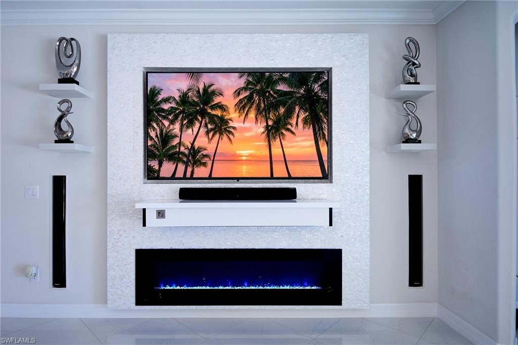 Discover this beautifully upgraded 3-bedroom, 2-bath single-family home in the highly desirable Bonita National Golf & Country Club, known for its resort-style living and exceptional amenities. This property includes a coveted Social Membership, offering access to an active and luxurious lifestyle. Step inside to an open, light-filled layout designed for both comfort and entertaining. The home features elegant porcelain tile flooring in the main areas, designer chandeliers, and two electric fireplaces that create a warm, inviting atmosphere. The spacious living area is enhanced with custom wall details and a built-in surround sound system. The fully upgraded kitchen is a standout, complete with premium finishes and a wine refrigerator—perfect for hosting or everyday enjoyment. Outdoor living is just as impressive. Enjoy lush landscaping for privacy and a serene backyard setting with a personal spa and tranquil water feature. The western exposure offers breathtaking sunset views over the lake—truly one of the highlights of this home. As a Social Member, you’ll enjoy access to world-class amenities, including a resort-style pool with lap lanes and poolside service, multiple dining venues, a full-service spa, fitness center, tennis courts, and a vibrant social calendar. Newly approved pickle ball and bocce courts will further enhance the lifestyle experience. Seasonal golf privileges are also included from May through October. Ideally located near Midtown Bonita, and just a short drive to the Gulf beaches, Coconut Point Mall, Miromar Outlets, and Southwest Florida International Airport. This home offers the perfect blend of modern comfort, privacy, and the vibrant lifestyle that makes Bonita National so sought after.