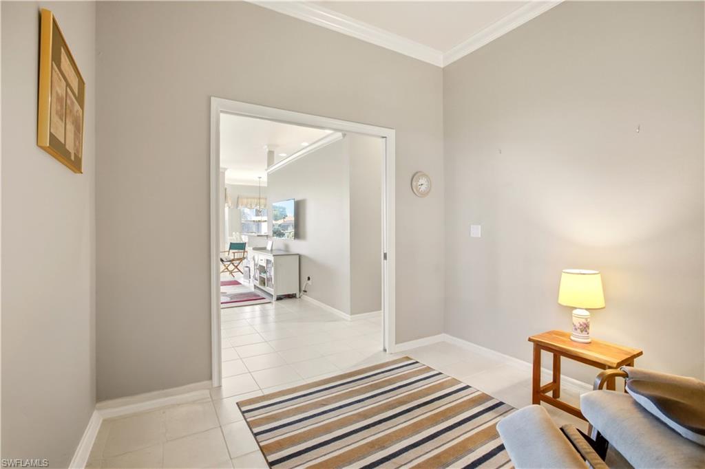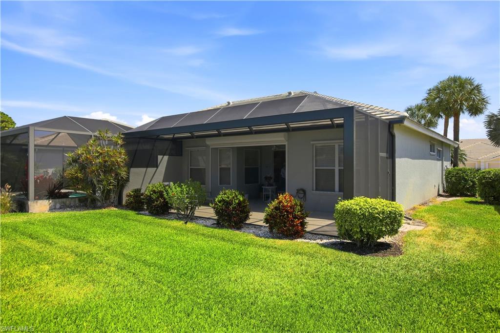 This is a wonderful opportunity to own this beautiful villa in one of the sought-after golf communities in Southwest Florida, Highland Woods Golf & Country Club. This impeccably maintained, beautiful two-bedroom, two-bath with a den/office home with a two-car attached garage with golf course, sunset and water views. Enjoy granite countertops, tiled flooring throughout. This villa has a new roof in 2020, new patio screening and decking and storm shutters. Highland Woods is a bundled golf community with an abundance of amenities such as seven pools, two fabulous restaurants, The Grille Room and the Woods Cafe poolside, a modern health club, six new pickleball courts, three new tennis courts, bocce courts,18 holes professional golf course. Putting chipping and driving range. Highland Woods is conveniently 19 miles from SW Florida International Airport, minutes from world-class shopping and dining, only two miles from the gulf for boating, swimming, fishing and more. Enjoy this home and the lifestyle.