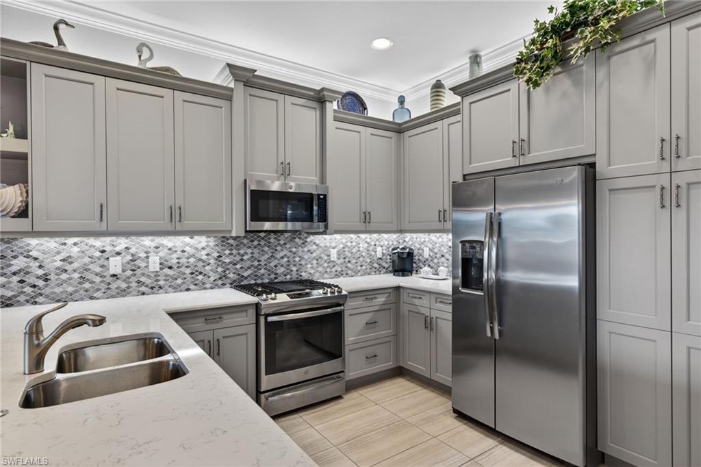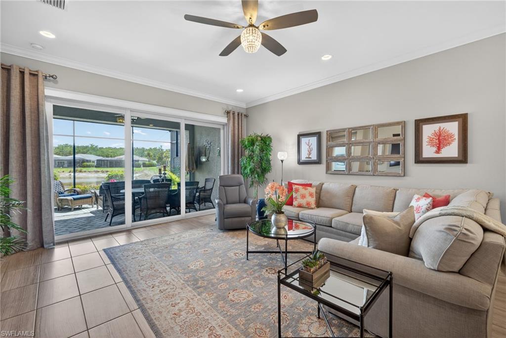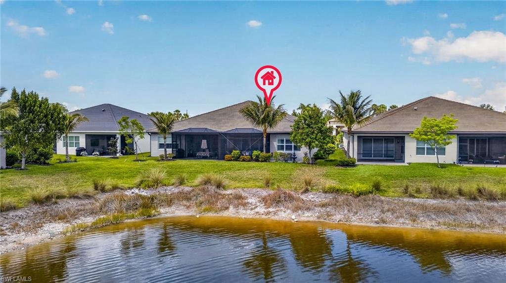Here’s your chance to join Valencia Bonita’s coveted 55+ active lifestyle community. This spacious lakefront Oxford Villa (2 bedrooms + den / 2 baths) truly stands above the rest, offering an impressive collection of high-end upgrades and thoughtful enhancements throughout. Enjoy peaceful lake views from your extended rear lanai with screened enclosure and pre plumbed natural gas for your grill, along with an additional extended outdoor patio beyond the lanai, creates the perfect setting for relaxing or entertaining. The home also features a screened front entry, allowing for great airflow and additional outdoor living space. Interior upgrades include plantation shutters, crown molding, and tile flooring throughout, along with a decorative dining room accent wall and a tray ceiling in the primary bedroom, adding both style and architectural detail. The kitchen has been beautifully upgraded with custom island woodwork, an updated backsplash, and under-cabinet lighting, while the pantry features custom wood shelving for added functionality. The den is enhanced with glass insert French doors, and The California Closets in the primary suite provide upgraded storage throughout the home. Bathrooms feature wood trim around mirrors for a refined finish. Additional functional upgrades include a laundry tub and a tankless water heater. Outside, enjoy a widened driveway and walkway along with a garage featuring an epoxy floor. Beyond the stunning finishes, this home offers valuable peace of mind with impact-resistant windows and sliders, a whole-house generator, and a pre-wired alarm system. Valencia Bonita living is truly unparalleled, offering low HOA fees with a newly bundled Xfinity cable and internet package for added savings, no CDD fees, and a natural gas community. The 45,000-square-foot clubhouse and lifestyle complex sits on 10 acres of resort-style amenities, including tennis, pickleball, bocce, multiple pools, a state-of-the-art fitness center, indoor and outdoor dining and bars, and over 25 social clubs. Residents also enjoy fire pits, cabanas, a full-service spa and nail salon, and even a pottery studio. With clubs ranging from adventure and stitching to bourbon and wine, you can tailor your lifestyle to be as active and social as you choose, all supported by a full-time Lifestyle Director and a top-tier fitness program with classes for all levels. This home is more than just a residence; it is your gateway to a vibrant, resort-style community. Move in and start living the ultimate Florida lifestyle, just 20 minutes to the beach and less than 30 minutes to RSW Airport. This villa is truly like having your cake and eating it too — you have a fabulous community and all the upgrades you can dream of.