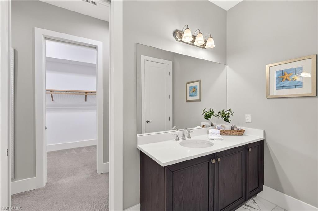 Lakefront and fully FURNISHED for convenience! This 4 bedroom plus den, 4 bath, two story Ashton Woods home is set within the gated community of Naples Reserve. With 3,516 sq ft of living space, a 3 car epoxied side-load garage, and an oversized driveway with generous parking, this home offers the space and layout many families are looking for. Interior features include 24 ft ceilings and skylights, a large primary bedroom and den located on the first floor, while 3 other bedrooms are located on the second floor, charming beadboard-style wainscoting, plantation shutters, italian veneta cuicine cabinets and a large center island, walk-in pantry with wooden racks for storing dry goods, custom bookcase feature, spacious laundry room with stainless steel sink, additional storage space by the garage for sports equipment and more! The outdoor living area is a standout, with a spacious screened lanai/paver deck, heated pool and spa with a sun shelf overlooking the lake, an outdoor kitchen with upgraded stone feature wall and bar seating that naturally becomes a gathering spot. The home is equipped with impact windows, Storm Smart electric shutters, power shades, and two A/C units, with separate systems for upstairs and downstairs. Naples Reserve offers a well rounded amenity package including a clubhouse with an active social calendar, resort style pool, fitness center, tennis, pickleball, bocce, basketball, dog parks, playground, and walking and biking paths throughout the community. Residents also enjoy a beach area with volleyball, a lakeside fire pit, and an updated tiki bar, restaurant, and clubhouse. Located less than 10 minutes to Publix, Walmart, restaurants, shopping, including the upcoming Costco with gas station. Approximately 15 minutes to Marco Island and white sand beaches, and 20 minutes to Downtown Naples and 5th Avenue.